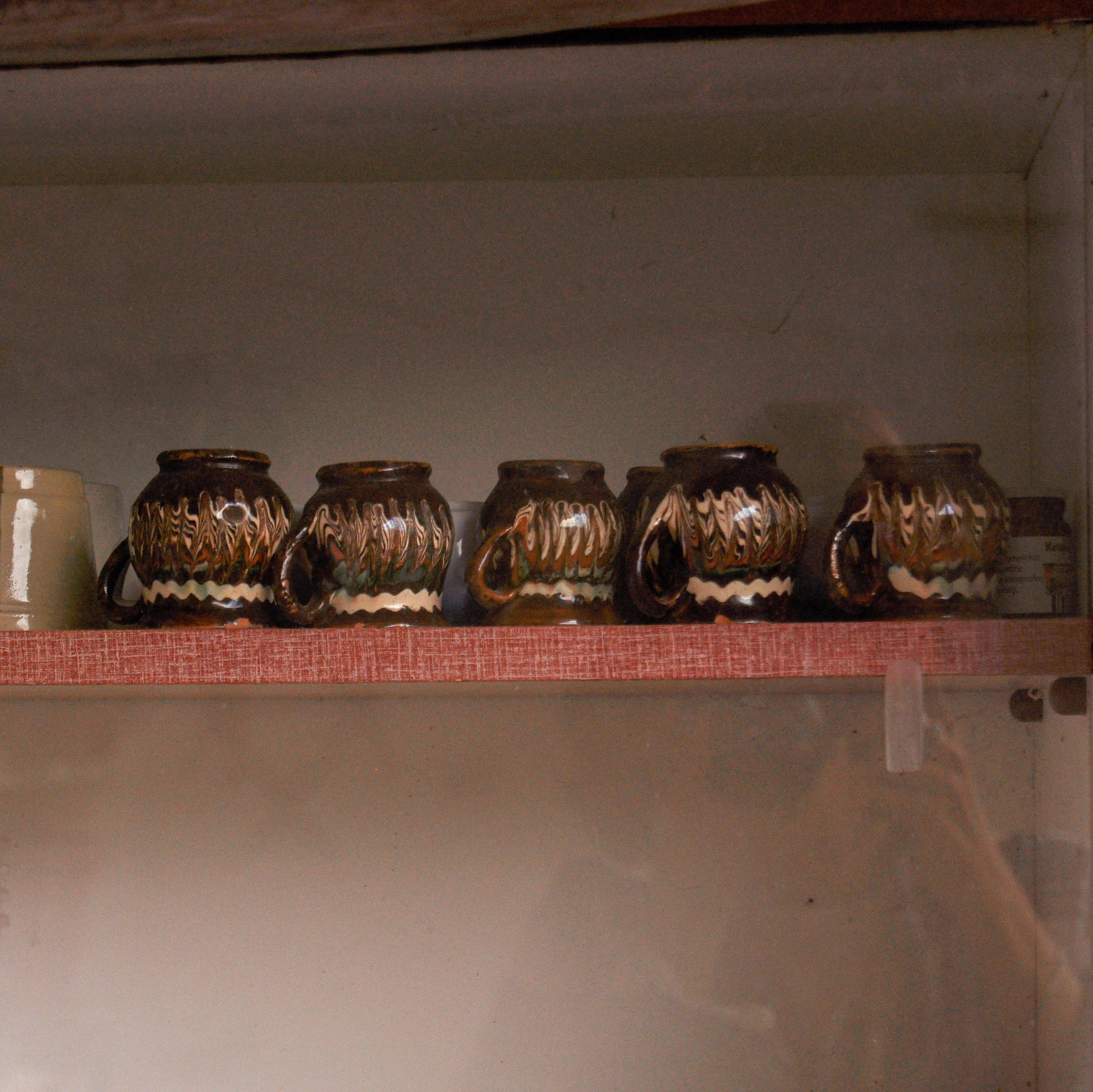 Îmi prezintă plantele pe care le îngrijește de pe balcon și observ în vitrină ceșcuțele din lut și cocoșul de Horezu, pe care apoi le voi regăsi, fără excepție, în toate casele din zonă în care am fost primită.