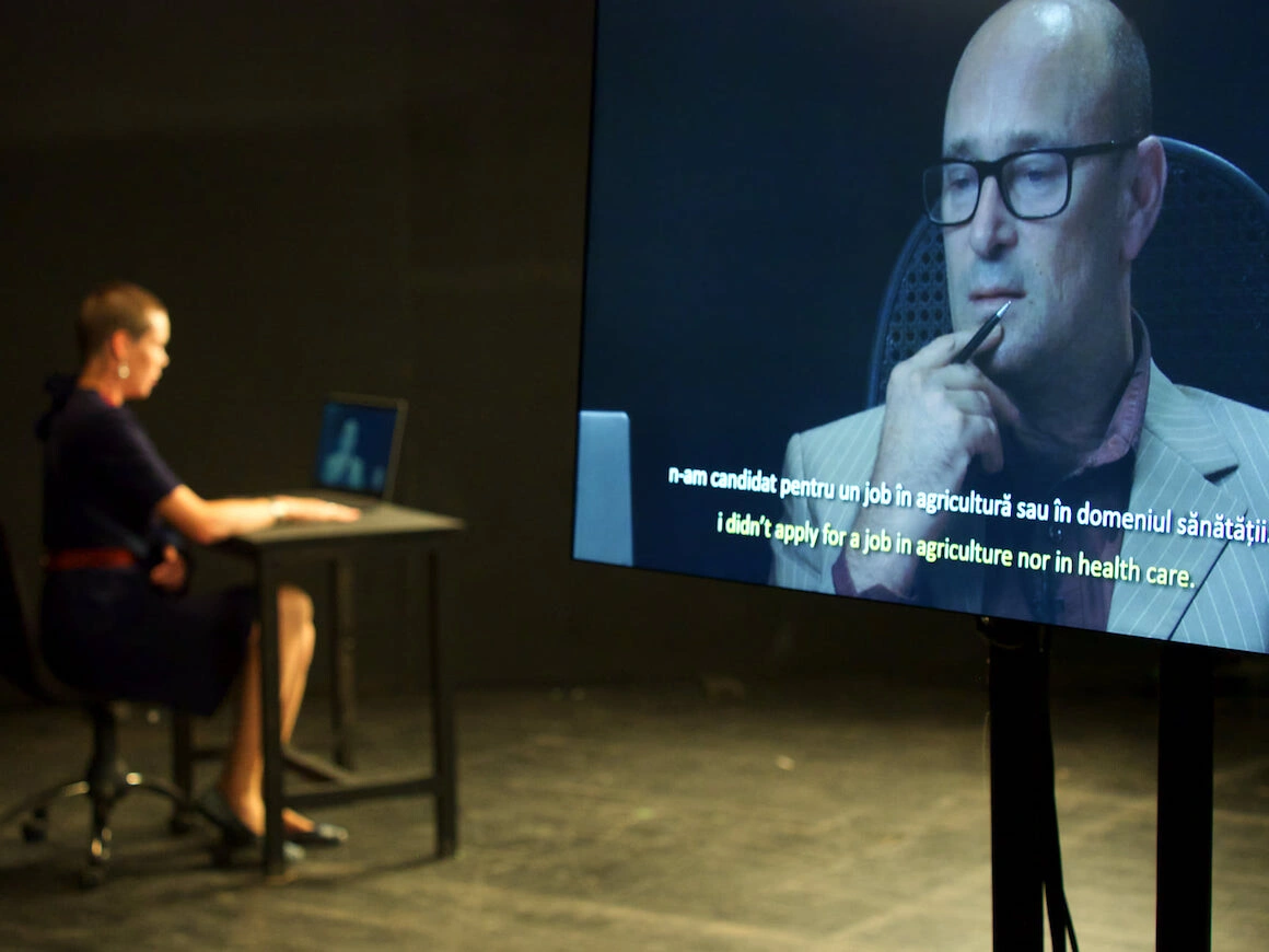 Spectacol în limba germană, cu traducere în limbile română și engleză.