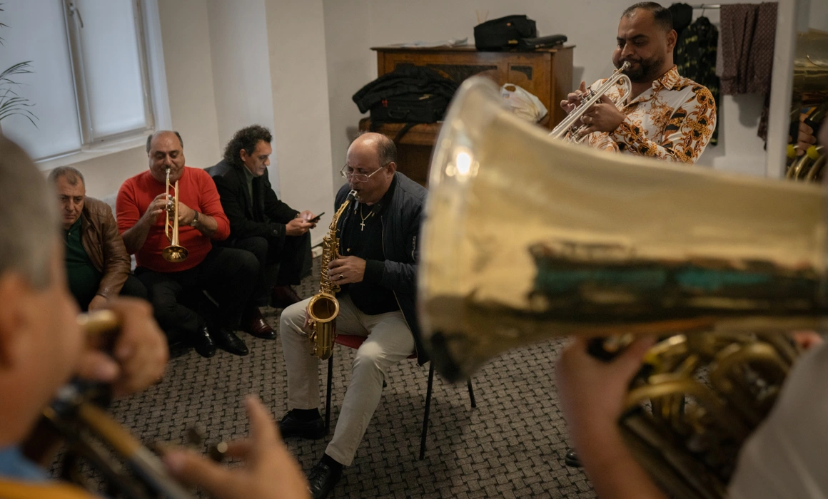 E ora 14:00 și Fanfara Ciocârlia și-a descărcat deja instrumentele la Arenele Romane din București. În ploaia măruntă de noiembrie, lucesc alămurile de la două trompete, plus încă două bariton și tenor, două tube, un saxofon și un clarinet. Toate sunt duse cu grijă în culise, iar instrumentele de percuție sunt urcate pe scenă. Mai sunt cinci ore până când ușile se vor deschide pentru public, dar pentru cei 11 artiști nu e timp de stat la povești. Au promis că aduc veselia verii în toiul toamnei care-i găsește într-un mini-turneu național cu oprire la Timișoara, București, Cluj, Brașov și Iași.