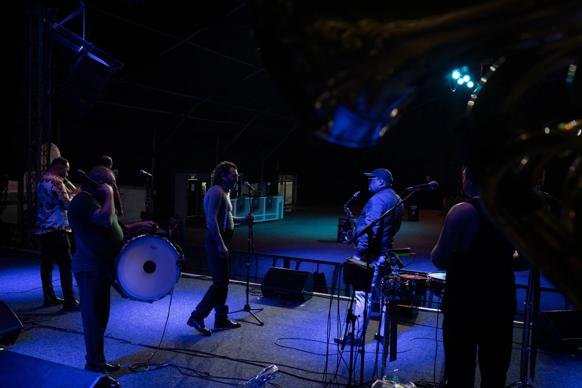 De fiecare dată când reiau o piesă, toboșarul Paul Benedikt Stehle numără când în limba romani, când în română sau engleză. Suflătorii îi cer scuze lui Canaf că tot reiau piesele, dar solistul reia la rândul lui cu aceeași poftă. „Poți să ai cea mai proastă zi, că tot te fac să zâmbești”, se aude vocea cuiva din echipa organizatorului Emagic, oprită în mijlocul cortului pentru că nu-și putea dezlipi ochii de la repetiții. Fanfara a început deja să hipnotizeze. „Ți s-a părut instabilitate?”, insistă Oprică la microfon. „Hai, încă o dată! Hai, că vine lumea peste noi, fraților!”.