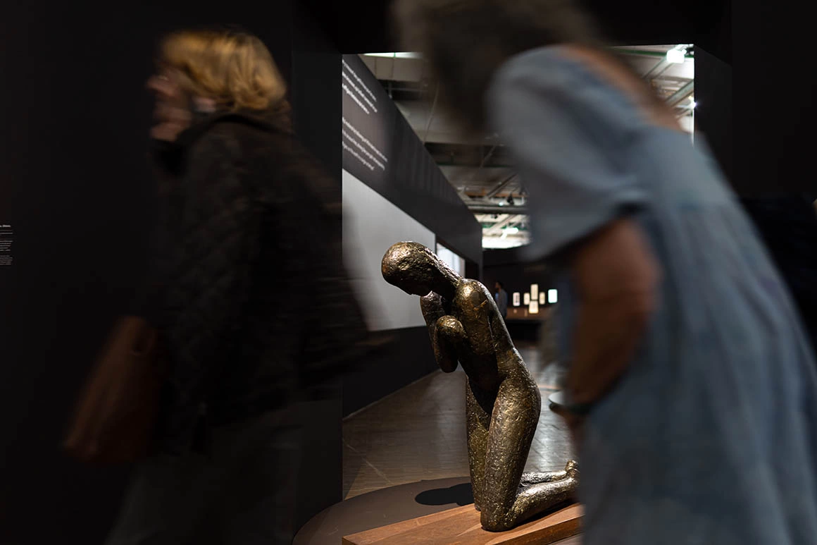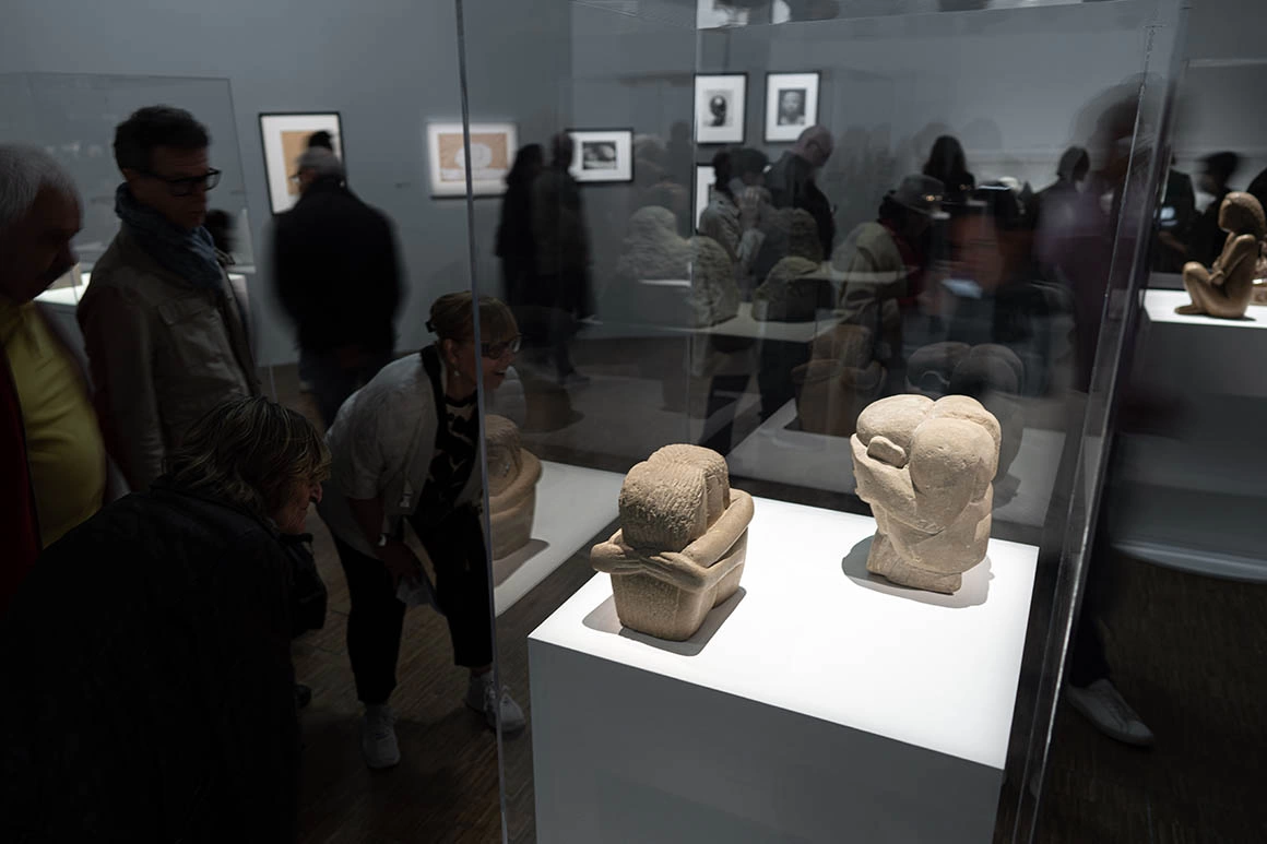Am intrat de trei ori consecutiv la această expoziție și aș mai fi rămas. Pe fundalul sonor, recunosc în surdină pianul lui Erik Satie și pornesc prin labirintul care-i conduce pe vizitatori prin viața sculptorului, trecând de la încăperi scufundate în întuneric la lumina absolută a zborului. Prima sală este învăluită în alb și expune seria de sculpturi „Cocoșul”: patru lucrări de dimensiuni diferite care simbolizează sunetul crescendo produs de cântecul păsării. Următoarea sală găzduiește „Muza adormită”, iar în sala următoare, pentru a vedea „Ruga”, vizitatorii se apleacă involuntar atât în fața sculpturii, cât și în fața porții din lemn care a fost oferită de România Franței acum aproape un secol.