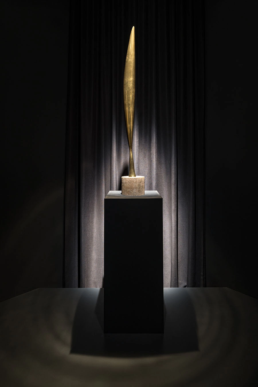 Imaginea principală: Vedere din expoziția „Brâncuși. Surse românești și perspective universale”. În centrul imaginii se află lucrarea „Pasărea în zbor”. Foto: Cătălin Georgescu