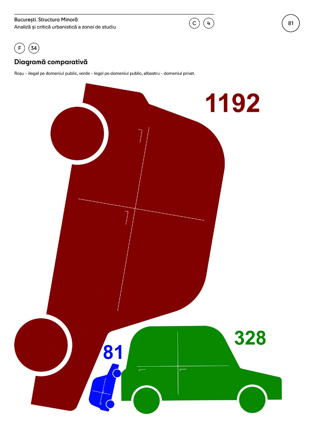 Un studiu făcut recent pe o zonă pilot din centrul Bucureștiului de către BAZA, arată cu cifre cum că „în zona studiată, aproape o treime din totalul staționărilor sunt abuzive: mașini parcate în intersecții, pe treceri de pietoni, pe mijlocul carosabilului, ocupând integral trotuare și forțând pietonii să iasă în stradă, chiar și pe arterele mari.” Pe lângă asta, foarte multe clădiri din oraș au fațada într-o stare deplorabilă. Citesc „Atenție cade tencuiala” și, în capul meu, încerc să-mi amintesc formula vitezei gravitaționale cu care ar cădea o bucată de decorațiune de ciment în capul copilului. Aș vrea să merg la distanță de clădirile astea, dar sunt mașini parcate pe jumătatea sigură din trotuar, iar pe partea cealaltă e la fel.