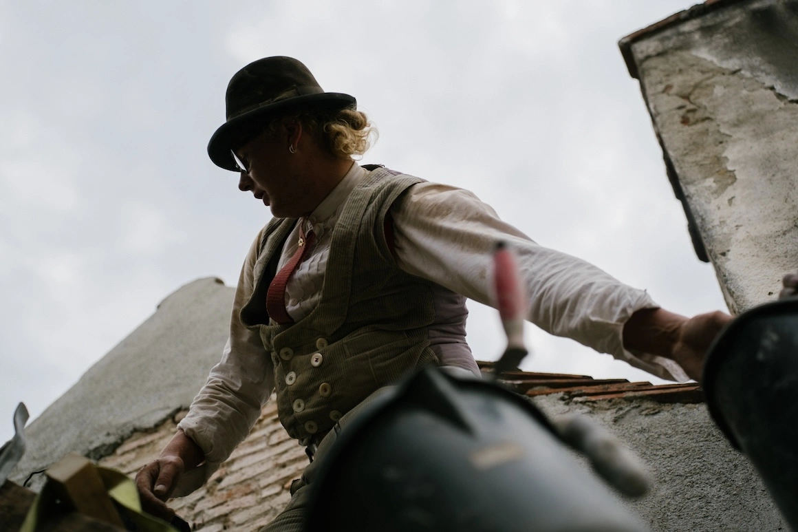 Pe o stradă alăturată, în curtea unei clădiri de pe la 1900, Ben își dă jos pălăria, ia o doză de bere și se așează la o masă alături de alți tineri. Are 28 de ani și e îmbrăcat la fel ca mai toți bărbații de lângă el. Un tânăr suit pe acoperiș aranjează șindrila, iar altul tencuiește un perete. Aș crede că am aterizat în cu totul alt timp, dacă pe fundal nu s-ar auzi rap german.