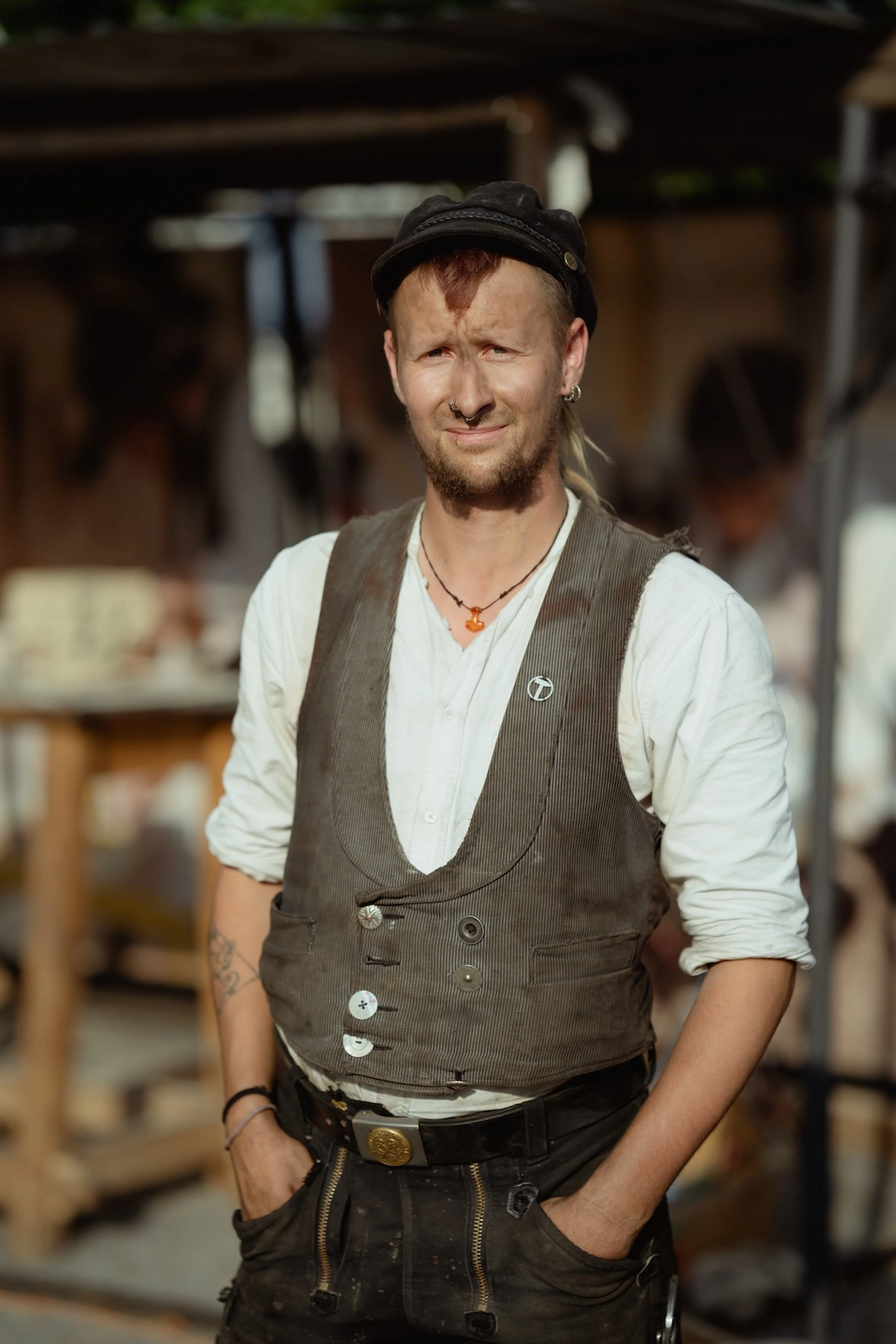 Într-o piațetă din centrul Sibiului, Finn modelează o bucată de fier proaspăt scoasă din forjă. Are vreo 20 de ani, poartă pantaloni evazați negri și cămașă albă cu mânecile suflecate, are un cercel în ureche și creastă punk de păr roșcat ascunsă sub un basc negru. În câteva minute, bucata de fier devine în mâinile lui un trandafir care va fi folosit ca decorațiune într-o biserică. Finn nu-i bagă-n seamă pe turiștii și localnicii care-i fac poze. Se concentrează să-i iasă petalele cum trebuie. La câțiva metri de el, Matilde sculptează cu atenție capitelul unei coloane. Lovește în piatră scurt și precis, cu o expresie calmă. Are 30 ani, tatuaje, poartă o vestă nisipie.