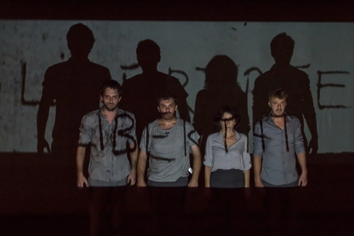 Radu: O admir pe Gianina Cărbunariu nu doar pentru temele alese, ci și pentru mizanscenă. Lucrul care mi se pare de multe ori limitat la destule spectacole politice este tocmai mizanscena. Pot înțelege că e o opțiune validă, pot înțelege accentul pus pe mesaj, dar asta e, sînt un spectator interesat și de formă, iar Gianina are în general propuneri formale care mi se par foarte interesante. La Tipografic majuscul este un moment pe care mi-aș fi dorit să îl replic în film, dar nu ar fi fost la fel de puternic și amuzant cum e în spectacol: cel în care personajele, profesori aflați la ședința de demascare a lui Mugur Călinescu, se așază umil în genunchi pentru a-și spune opinia la un microfon așezat jos. E un moment pur teatral și pentru astfel de momente merită văzut întregul spectacol.