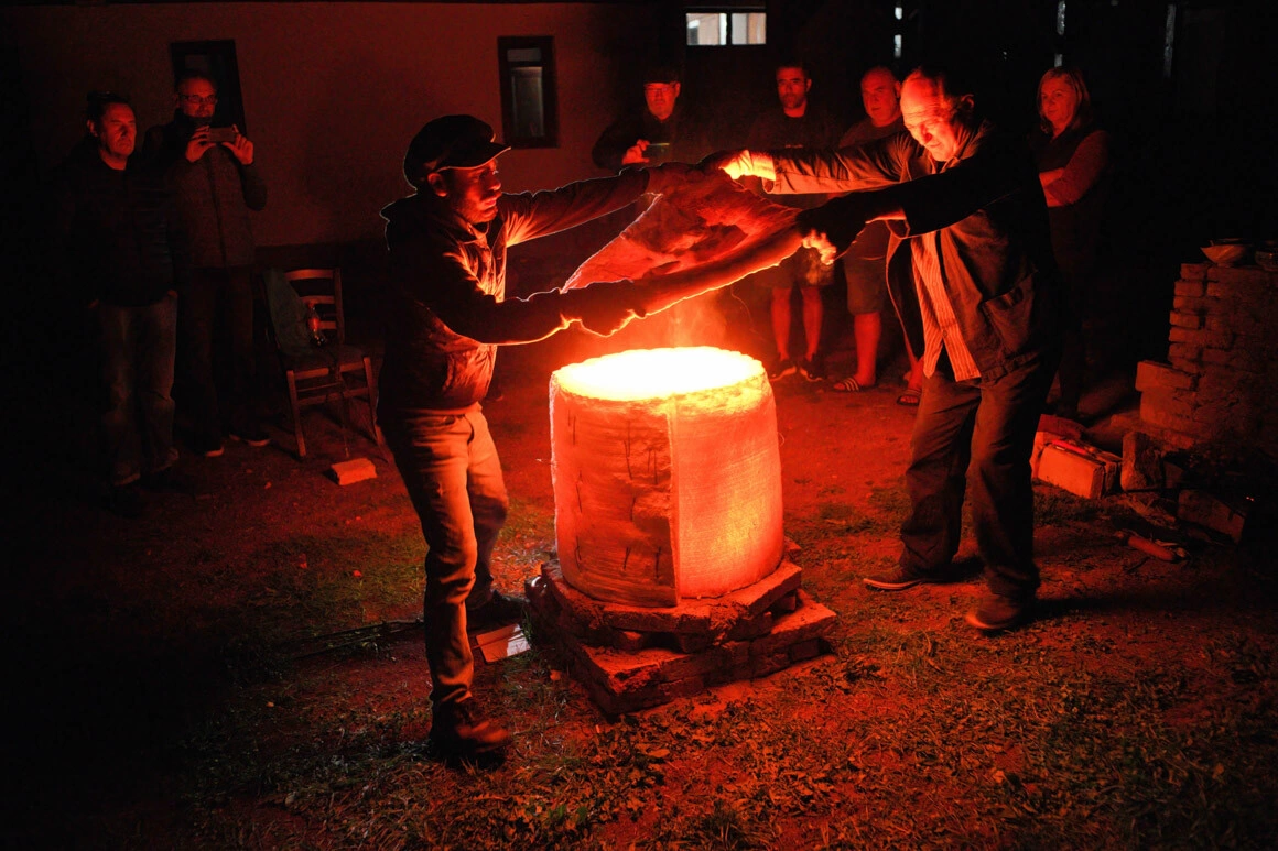 Seara târziu, după închiderea atelierelor de creație, pe Bálint Dénes îl găsim la muncă, pe bocșă, la fel ca în ultimii 39 de ani, zi și noapte, șapte zile din șapte. Deși la pensie de peste 20 de ani, cu grupa întâi de muncă, nu s-a oprit deloc. Mai mult, deși simte că meseria va dispărea, l-a învățat și pe unul dintre copiii lui cărbunăritul și acum lucrează cot la cot. De meserie tractorist, după doar câțiva ani în muncile agricole a intrat în cărbunărit unde, înainte de ’89, se câștiga foarte bine. „În acești ani de meserie nu s-a schimbat nimic. Uneltele folosite, lopata, țapina sau furca, sunt aceleași, etapele și modalitatea de lucru păstrate la fel, doar valoarea banilor a scăzut mult.”