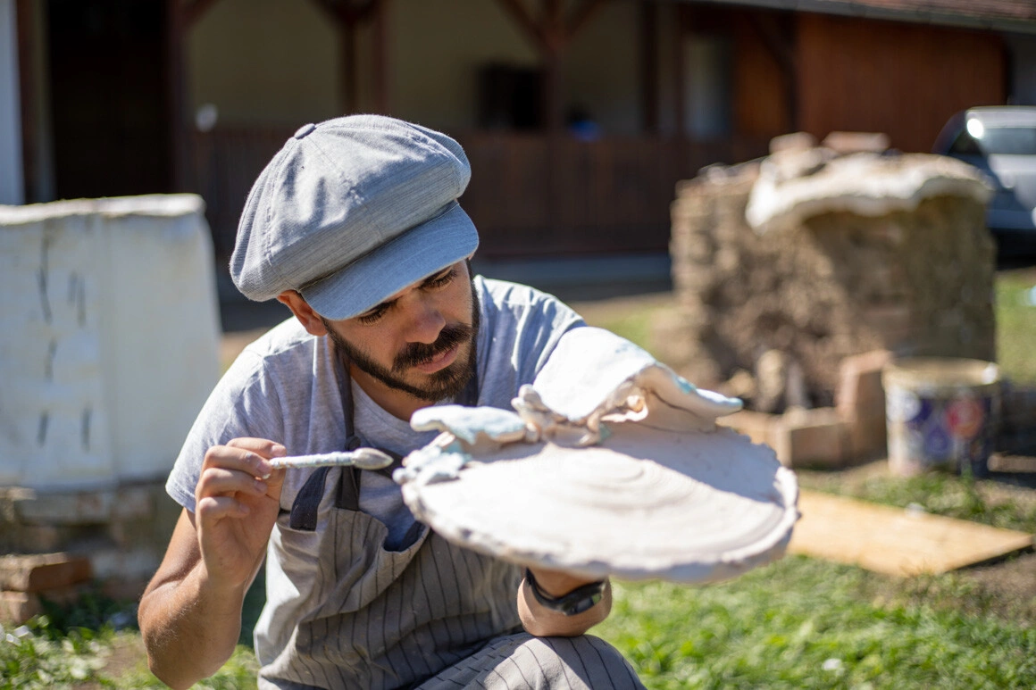 Artistul Marius Stanciu a folosit mangalul pentru a crea vase din ceramică. După construirea cuptorului în aer liber din cărămizi vechi și chirpici, Marius a încălzit cărbunele la temperatura de 1.000 de grade, necesară arderii obiectelor ceramice create manual. „Când eram copii și mergeam la bunici, undeva în Oltenia, într-o zonă foarte frumoasă, cu păduri, seara ieșeam la porți, unde făceam semne copiilor din vecini cu tăciuni încinși, luați de la cuptorul de pâine. Asta însemna că am sosit de la București cu walkman, dulciuri, jucării și suntem la poartă, gata de joacă”, își amintește Marius. Miza artistului la Cărbunart a fost să adauge mangal și în lucrările sale de ceramică.