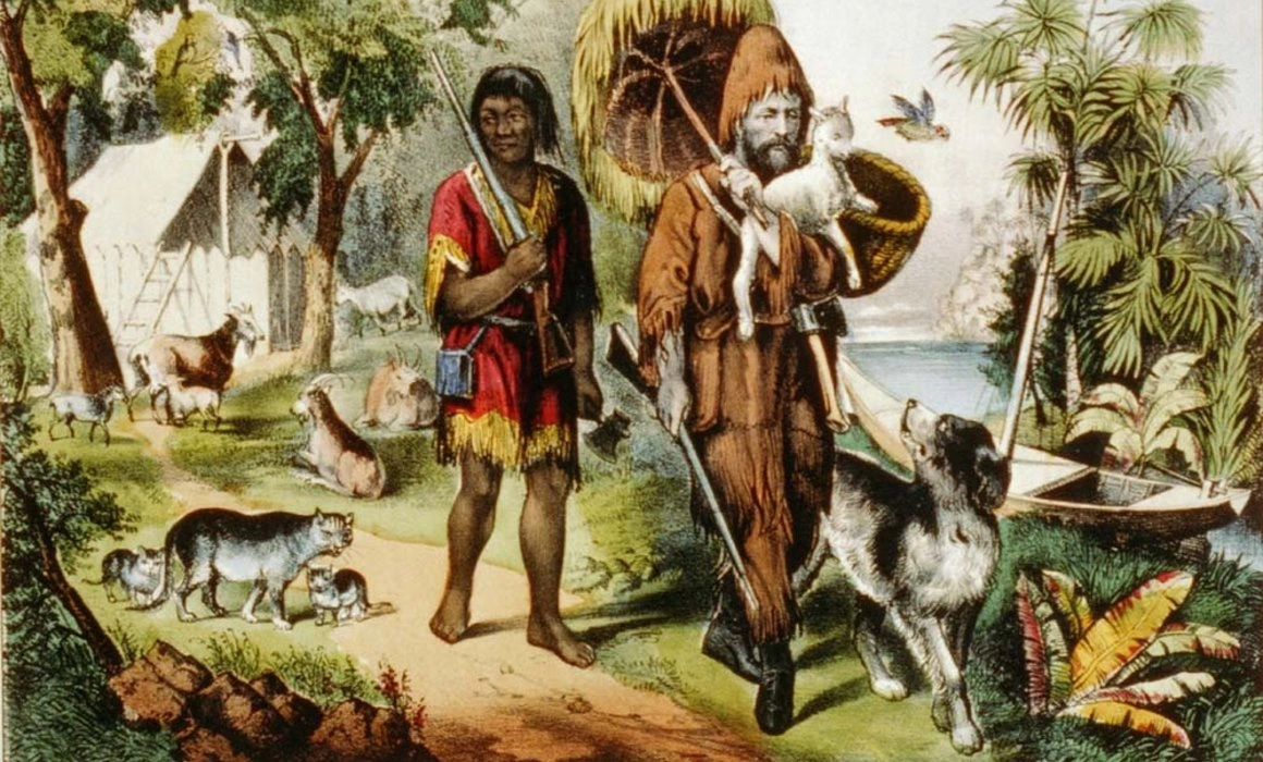 S-au împlinit de curând 300 de ani de la apariția romanului Robinson Crusoe, scris de Daniel Defoe, dar publicat inițial anonim. Titlul original era de fapt The Life and Strange Surprizing Adventures of Robinson Crusoe, of York, Mariner. Cartea spune povestea unui englez care naufragiază pe o insulă pustie din Pacific, unde va petrece următorii 27 de ani înainte de a fi salvat și de a se întoarce la civilizație. 27 de ani în care reușește să utilizeze cele câteva obiecte pe care le salvase de pe vas – inclusiv o Biblie – pentru a transforma insula dintr-un spațiu sălbatic într-un habitat al civilizației creștine occidentale. De la un punct încolo, Robinson va fi întovărășit pe insula sa de un tânăr de culoare pe care îl salvează din mâinile unor canibali care ajung pe insulă. Crusoe repetă asupra acestui „bun sălbatic” – și el canibal –, căruia îi dă numele Vineri, acțiunea civilizatoare pe care o exercitase asupra insulei: îl convertește la creștinism, îl învață engleză, îi predă bunele maniere și, desigur, îl folosește ca servitor.
