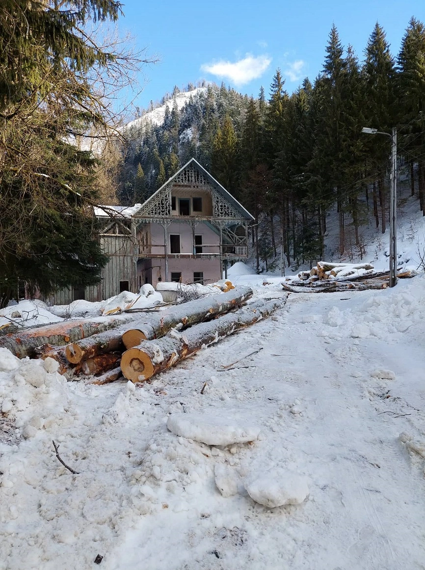 Însă anul acesta se reface amenajamentul silvic, iar exploatatorii nu au voie să taie, ceea ce poate explica de ce momentan nu sunt depozitate lemne în curte. Din iarnă, odată cu noul amenajament, nu există garanție că nu se va exploata din nou, folosind Casa Scriitorilor ca rampă primară.