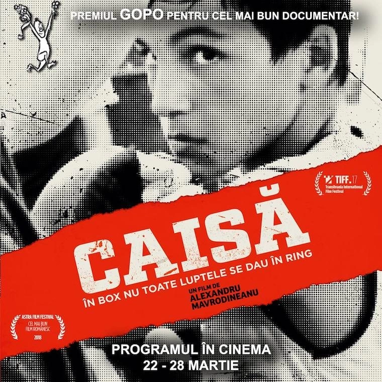 Un documentar mai bun este Caisă – regizat de Alexandru Mavrodineanu, care l-a și filmat și a cosemnat montajul (împreună cu Eugen Kelemen și Gabriel Basalici). Titlul vine de la porecla unui băiat rom de vreo 13 ani, din București, care face box. Acțiunea se petrece prin 2013. Metoda lui Mavrodineanu este observațională. O prezență serioasă, tăcută, cuminte, „Caisă” (pe numele lui adevărat Cristian Palcuie) vine dintr-o familie iubitoare, dar foarte săracă. Mama lui nu are serviciu. Din cât se înțelege, o altă rudă se află la închisoare (închisoarea e o referință repetată în dialogurile purtate în acest film între oameni din lumea boxului). Din viața lui de acasă, Mavrodineanu, care e un povestitor rapid, ne lasă să întrezărim suficient – o clădire dărăpănată, o curte cu gunoaie – încât să înțelegem că performanța sportivă e șansa lui cea mai bună de a ieși din sărăcie.