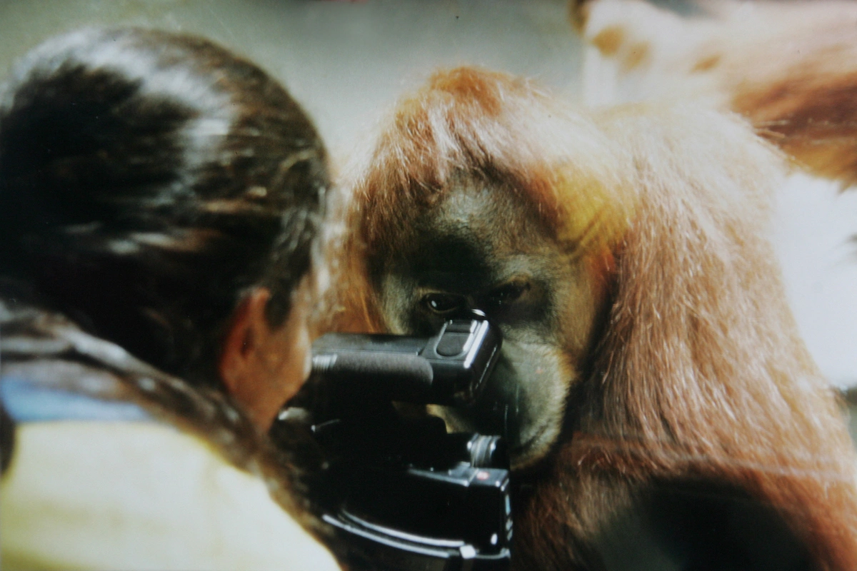 Aș vrea să vorbim despre interesul pentru animale, de care discutam la început. Aveți o fotografie în vitrină, e cu un urangutan. E făcută în Indonezia?
