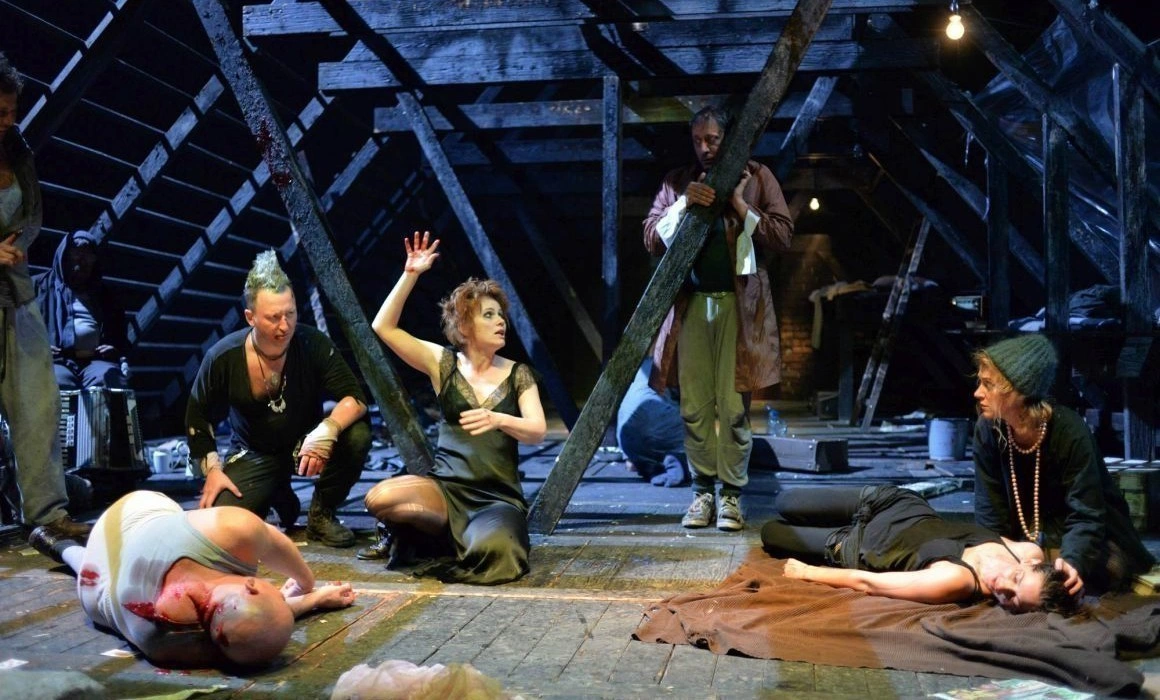 Este unul dintre spectacolele cu cel mai bun pedigriu de la FNT – textul lui Gorki, Azilul de noapte, regia lui Yuri Kordonsky, echipa Teatrului Maghiar de Stat din Cluj (printre care şi Miklós Bács, unul dintre cei mai cunoscuţi profesori de la Cluj). Povestea urmăreşte un grup de 11 oameni ai străzii care locuiesc în acelaşi azil de noapte și ne arată întâlnirile lor şi drumul fiecăruia către acel loc.