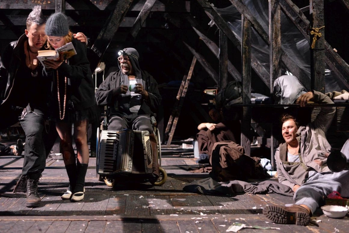 That being said, asta nu înseamnă că regia lui Kordonsky este una strict funcţională/care nu merită atenţie, ci una (dorit) invizibilă. Coordonarea actorilor şi coregrafia lor în spaţiul azilului este meticulos calculată și se întinde de la buza scenei până la capăt. Kordonsky aşterne straturi de acţiuni mici şi mărunte care creează atmosfera agitată a unui spaţiu locuit de 11 persoane încărcate de propriile drame. Textul lui Gorki este pus în prim-plan prin actori, Kordonsky este doar mâna care ghidează din spate, cu respect faţă de materialul cu care lucrează. Fără megalomanie. Fără didacticism.
