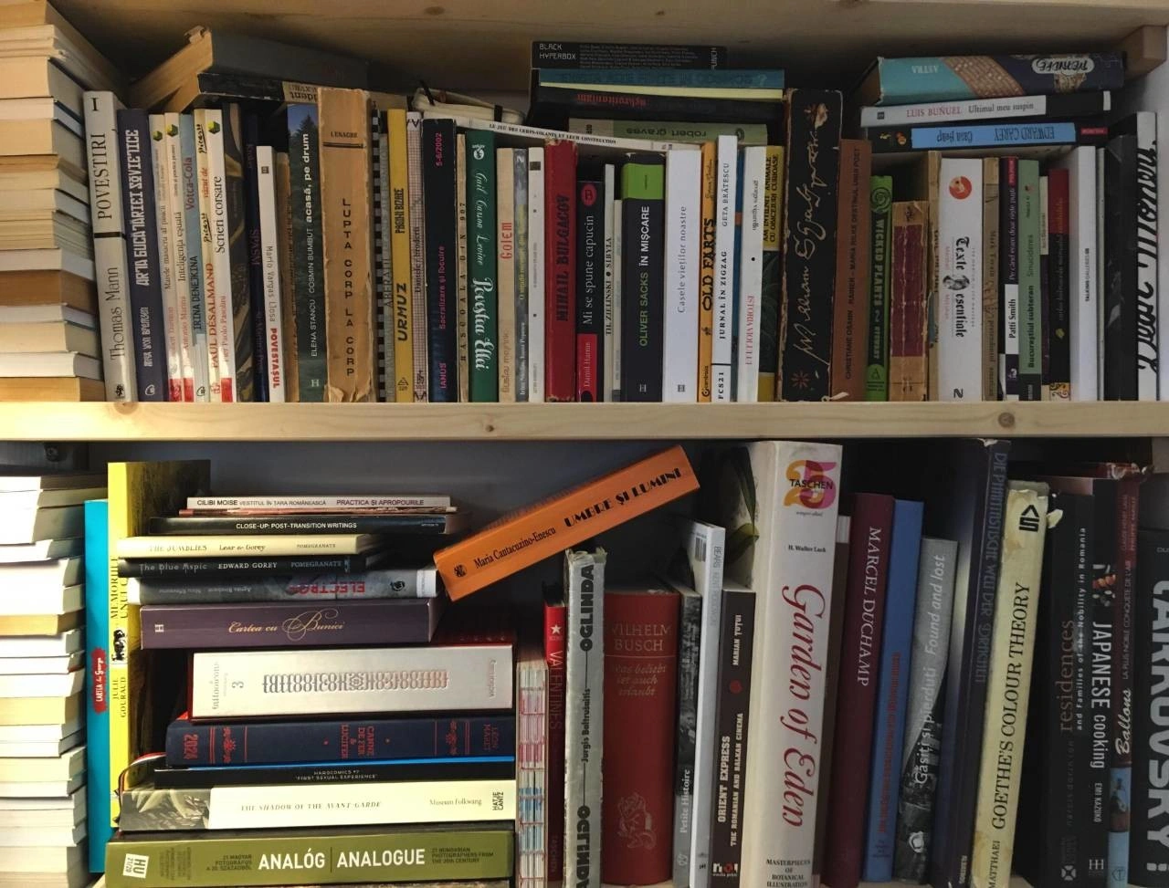 Dintotdeauna am asociat ideea de bibliotecă nu cu o piesă de mobilier în care sunt aranjate frumos cărțile, ci mai degrabă cu unul dintre elementele care musai ar trebui sa fie în acea „room of one’s own”, un spațiu de lucru precum minunăția de cottage a lui Roald Dahl. Orice grămadă de cărți pentru posesorul lor devine o bibliotecă, iar forma în care stau ele spune multe despre stăpânul lor. Ciudat este că nu mi-am pus problema asta pînă cînd am primit întrebarea „Cum arată biblioteca ta?”. Atunci mi-am dat seama că este varză, da, am o bibliotecă varză, așa ca mine. Cărțile sunt împrăștiate în cutii și după mine car constant cîteva exemplare la care țin foarte mult. În plus, am pierdut o mulțime de cărți pe care le iubeam mult, dar le-am împrumutat bazîndu-mă pe memoria mea de elefant care se pare că funcționează doar în cele mai stupide privințe. O singură dată am avut norocul să am o bibliotecă numai a mea, la atelier, unde am un prici înfundat în colțul camerei și în al cărui perete sunt încastrate doua rafturi ghiftuite cu cărți. Locul ăla a fost singurul refugiu „doar pentru mine” unde lumina zilei nu ajungea deloc și în care apăsările cotidiene nu prea își băgau nasul. Tot acolo am încheiat un capitol din viața mea care a „închis” definitiv și camera.