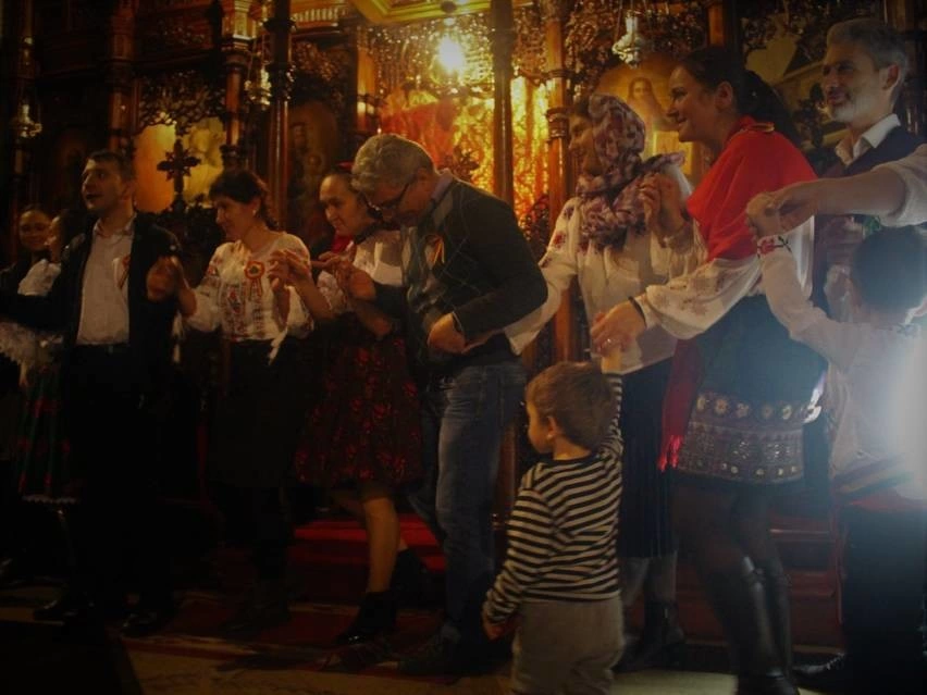 Într-un colț, șezătoarea constă într-un grup de bunici care împletesc lână. Povestesc despre șezătorile din tinerețea lor, iar eu mă gândesc la ce-a lăsat în urmă fiecare bunică în România și ce-a descoperit aici. Preotul ne îndeamnă să păstrăm datinile românești, dar să nu ne enclavizăm, fiind de datoria noastră să ne integrăm în societatea multiculturală din Londra. O femeie din public crede că ar trebui să ne întoarcem în țară. Altcineva de lângă mine o îndeamnă pe sub mustață să plece ea. La final, ne strângem cu toții mâinile într-o horă a unirii în jurul bisericii. Ar mai fi a doua jumătate de program. La coadă la sandvișuri, o doamnă din public o întreabă pe prezentatoare cât mai durează toată treaba. „Cât vrem noi, nu avem o oră exactă. Trebuie să ne bucurăm acum cât mai mult, 1 decembrie 2018 nu va mai fi.”