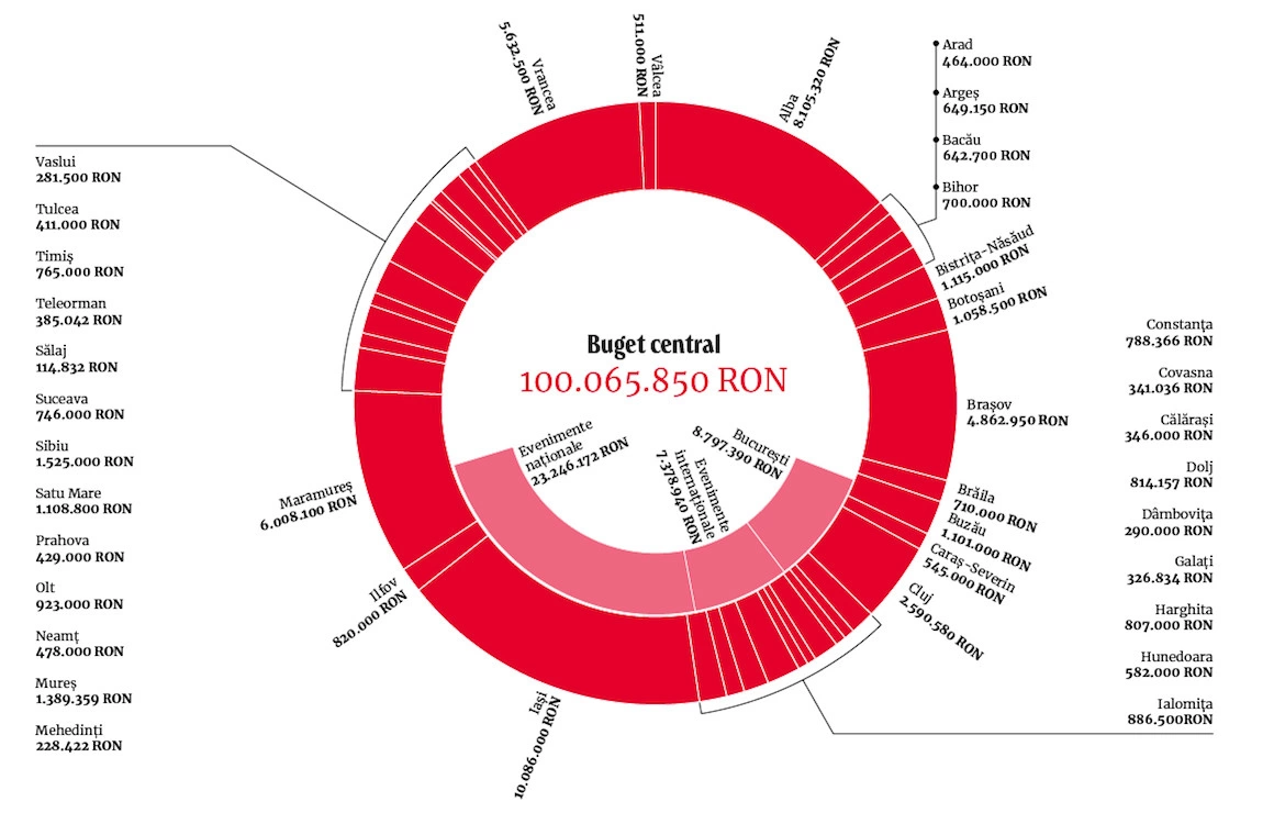 - Care este bugetul total alocat în județul X pentru activități / proiecte legate de Centenar?