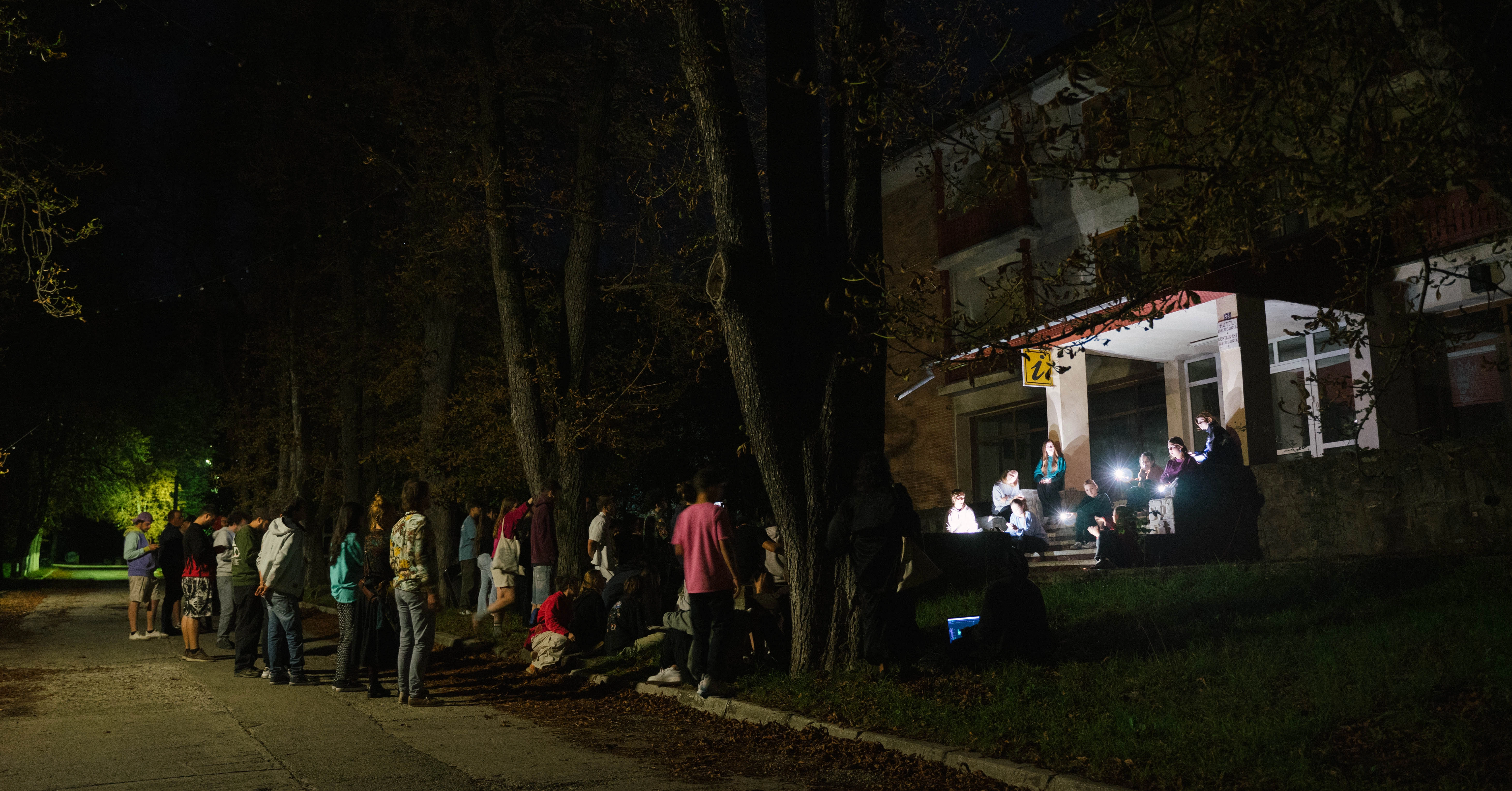 Ioana Chițu, actriță, și Tiberiu Cimpoeru, tehnician de teatru, au primit din partea adolescenților o doleanță importantă: vor să facă exerciții de conectare. De la încercarea de conectare și de la tema taberei, simbioza, s-a ajuns la o întrebare: ce se întâmplă când se termină Internetul după atâta doom scrolling? În continuare, tinerii au dezvoltat o lucrare despre relația lor complicată cu statul pe telefon, de la avantajele informării, la disconfortul procrastinării și la starea de golire a minții atunci când imaginile își pierd sensul. Un moment marcant din timpul reprezentației de pe treptele fostului hotel din tabără a fost acela în care întreg grupul de adolescenți a mimat gestul scrollării pe telefon în sincron.