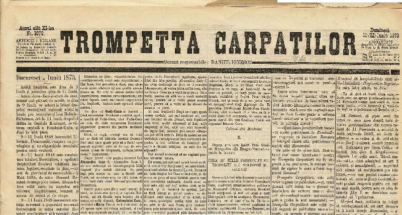 În 16, rue Cujas, la chiar adresa la care a locuit și Arthur Rimbaud în Parisul anului 1872, Constantin Georgian (1850-1904), licențiat în Litere și Filosofie la București, de câteva luni bursier al fondului Hillel-Manoach la Sorbona, École des Hautes Études și Collège de France, primește o ciudată scrisoare. Ceruse unui amic din tinerețe, un anume C. Radovici, amănunte despre cum se mai trăiește în București. Acesta îl informează despre climatul general („în scrisoarea Dtale mă întrebi cum merge politica pe la noi. Foarte rău!”), despre evoluția taxelor comerciale (noile „accize”: licența pe spirtoase) și îi trimite chisele cu nespecificate dulcețuri. Dar greul epistolei îl duce relatarea despre gazeta Trompeta Carpaților și directorul său (care, astfel, continua mai vechiul său instrument de suflat, Buciumul), „Dl Cesar Bolleac”, care se ocupa și cu Muzeul de Arheologie, viitorul Muzeu Național al Bucureștiului. Iată porțiunile relevante, după indispensabila toaletă (autorul nostru prezintă destule turbulențe grafice, toate inutil de preluat aici).