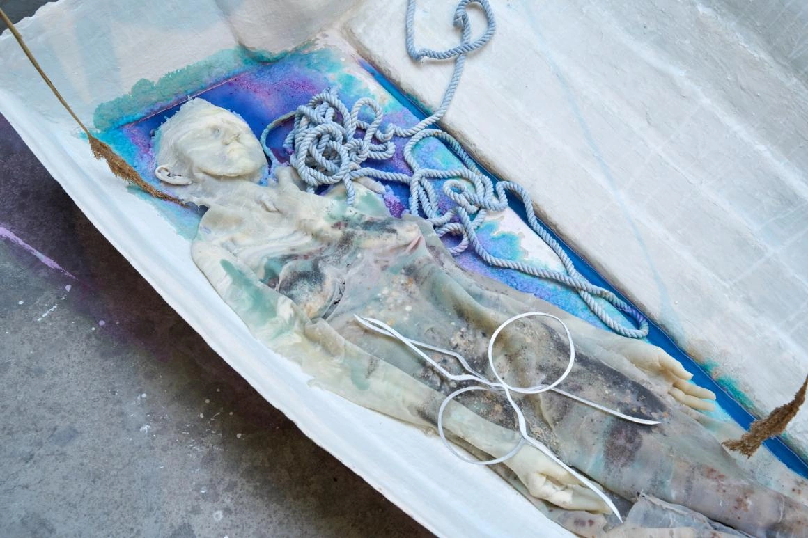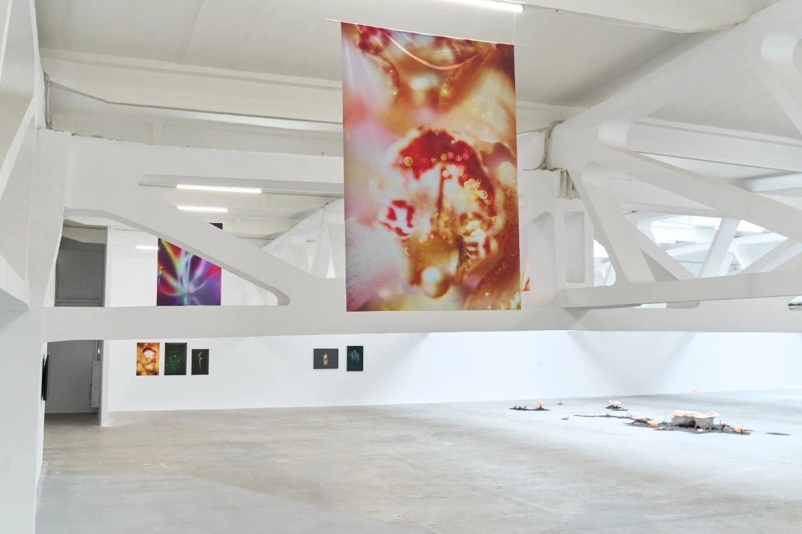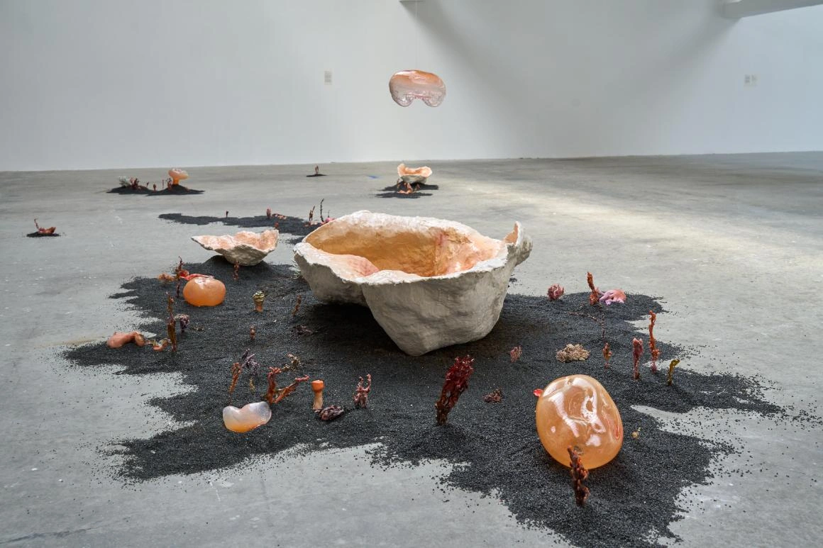 Căutarea artistelor a început de la Marine Nouvel, o artistă tânără din Franța. Eram chiar la începutul căutării mele curatoriale, și timp de trei ani am ținut legătura cu ea. Am povestit și despre teza ei de doctorat despre vâscozitate și rolul substanțelor de acest gen pentru oameni și animale, și despre practica ei artistică. Marine vrea să aducă texturile slimy, vâscoase, mai aproape de oameni. Să fie înțelese nu ca ceva ce provoacă repulsie, ci ca ceva ce oferă grijă, pentru că și corpul nostru se protejează prin producția de mucus și fluide. Ea vorbește nu doar despre corpul uman, ci și despre mucusul și texturile lipicioase produse de vietățile non-umane, spre exemplu mucegaiul. Le prezintă într-un mod foarte estetic, atrăgând privitorul prin aspectul lor. Marine lucrează cu mai mulți oameni de știință din Franța, care au susținut-o și cu teza de doctorat, exact pentru a explica cum aceste materiale vâscoase ne protejează corpul.