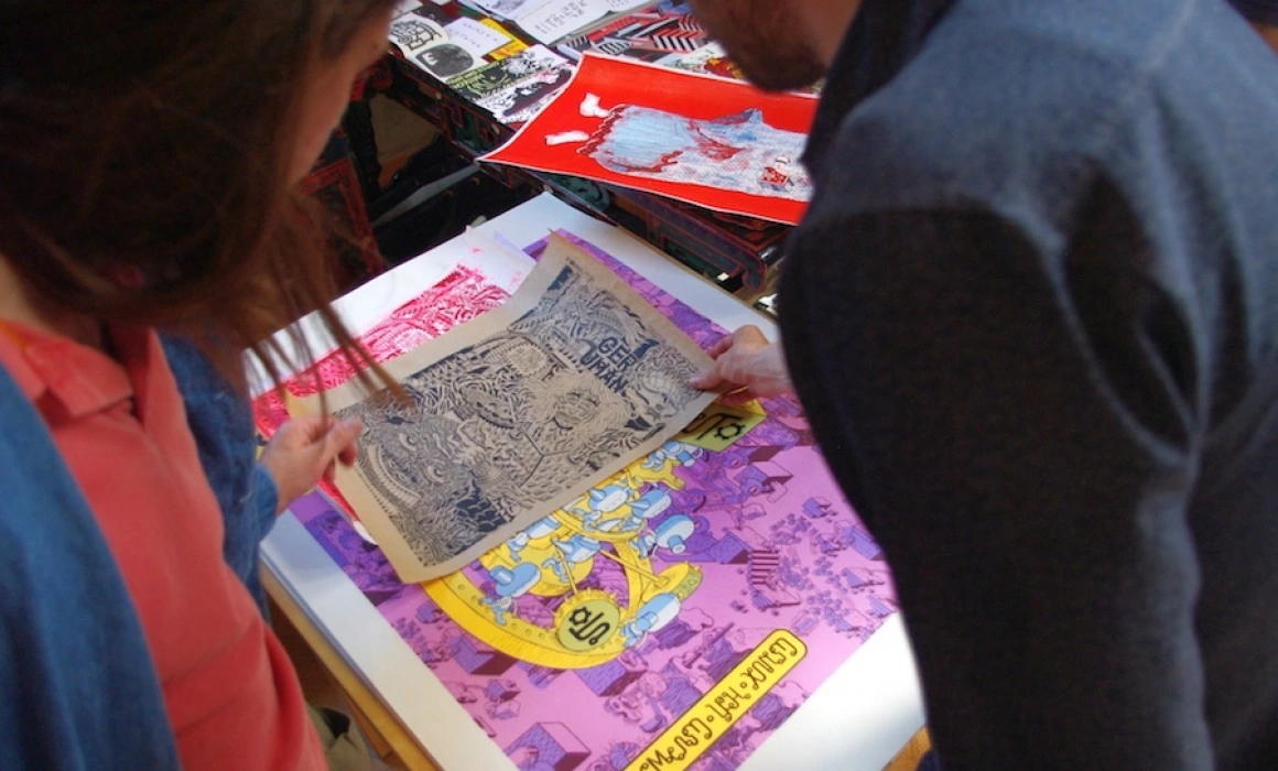 E primul târg în care unii dintre cei mai mișto ilustratori care muncesc și trăiesc în România s-au adunat de capul lor ca să-și prezinte și să-și vândă creațiile. Se învârt pe-aici oameni cu pseudonime și beri în mână: Sorina Vazelina, Kitra și Miloš Jovanović. Evenimentul se cheamă Buy Bye - Underground illustration market și a fost ideea lui Andy “Sinboy” Luke, pe care o să-l tot vedeți și pe la noi pe Scena9, pentru că e unul dintre ilustratorii noștri oficiali.