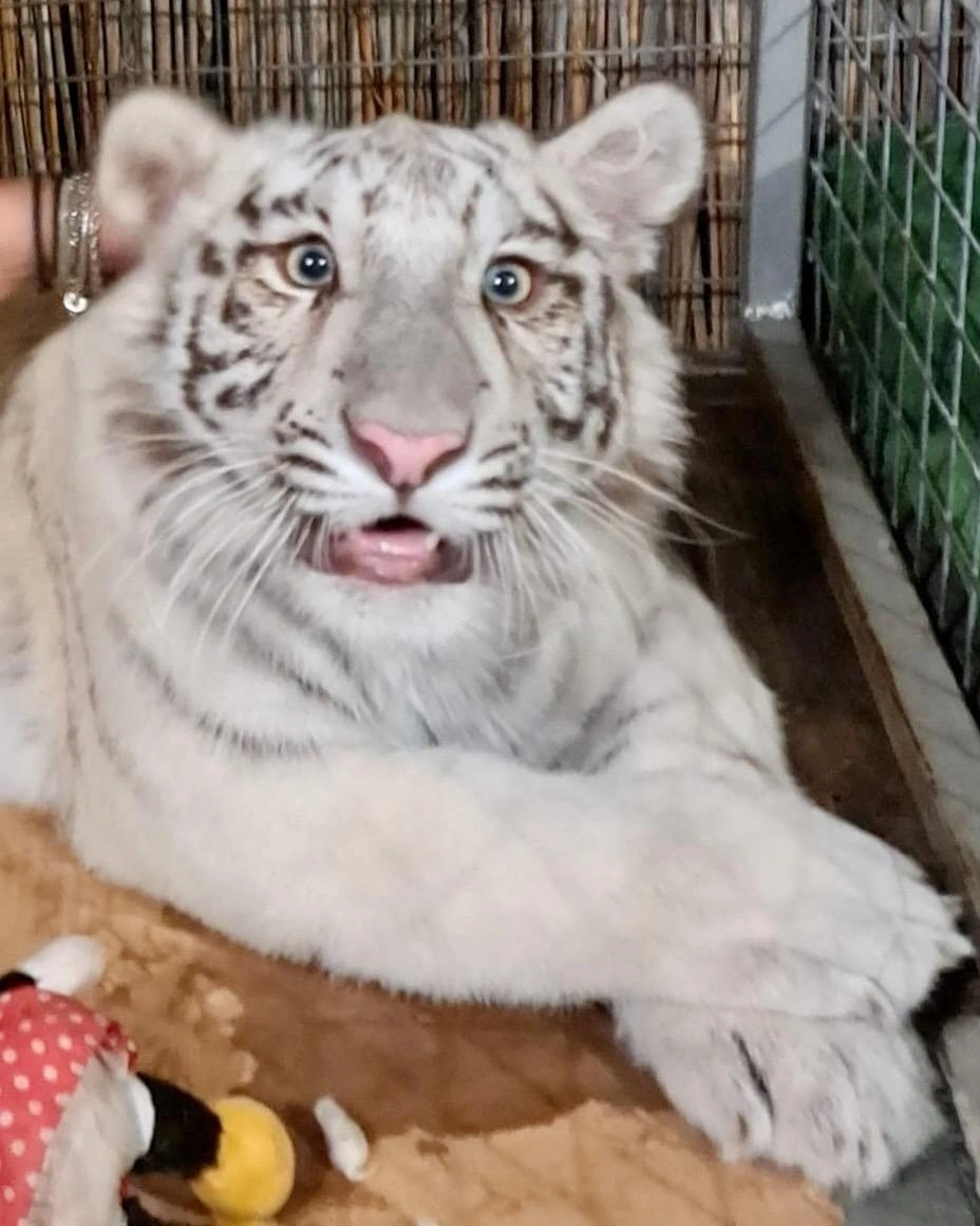 50 de lei pentru joacă și selfie cu un tigru alb rănit