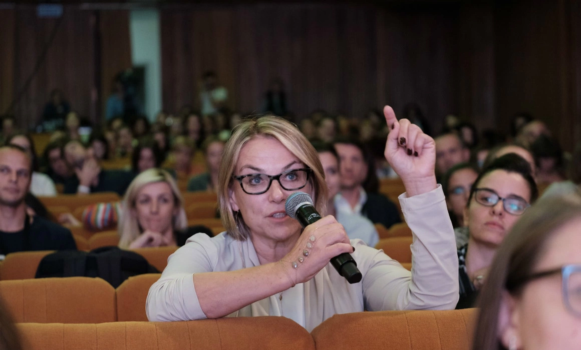 Însă pentru că i-am citit cărțile, traduse și la noi (Inteligența erotică și Regândirea infidelității) și i-am devorat podcastul, al cărui fiecare episod e un fel de ședință deschisă de terapie de cuplu, m-am dus s-o ascult și la Unfinished. Mă așteptam să-i văd discursurile de la TED, care au adunat peste 20 de milioane de vizualizări până acum - aduse la zi, reconfigurate, dar reciclate. Ce am văzut a fost o ședință de terapie de grup, cu câteva sute de oameni în sala arhiplină în care a avut loc conferința propriu-zis și alte câteva sute, în sala unde s-a proiectat evenimentul, pentru cei (mai mulți) care n-au mai prins loc în sală. Prezentatorul american a contribuit la așteptări, schițându-i portretul lui Perel în câteva tușe strălucitoare: vorbește fluent 9 limbi, discursurile ei de la TED au adunat peste 20 de milioane de vizualizări până la ora actuală, Regândirea infidelității s-a tradus în 25 de limbi străine, „mai multe, chiar, decât vorbește Esther”.