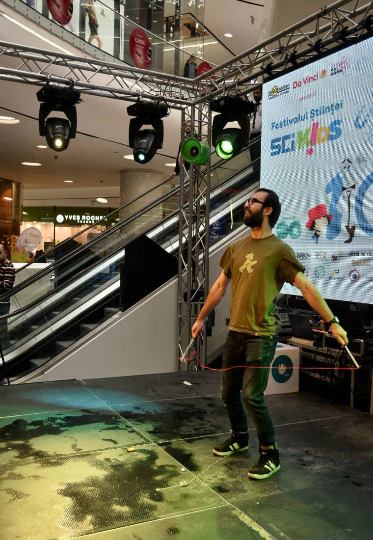 Magneți și busole, eprubete și pipete, Claudia și baloanele de Guinness, puzzle-uri și jocuri cu bile, roboți din Lego și roboți care fac tumbe, acuarele și ojă, calculatoare și-un Xbox, jonglerii și experimente, vloggeri și fani, uimire și entuziasm. A, și un nor sintetic pe acoperiș, spre îngrijorarea administratorilor clădirii. Toate astea s-au întâmplat pentru vreo 10.000 de oameni în cele 5 zone pregătite de organizatorii de la Asociația faSCInation la SCIKiDS, un festival de știință pentru copii găzduit de un mall din București la final de octombrie.