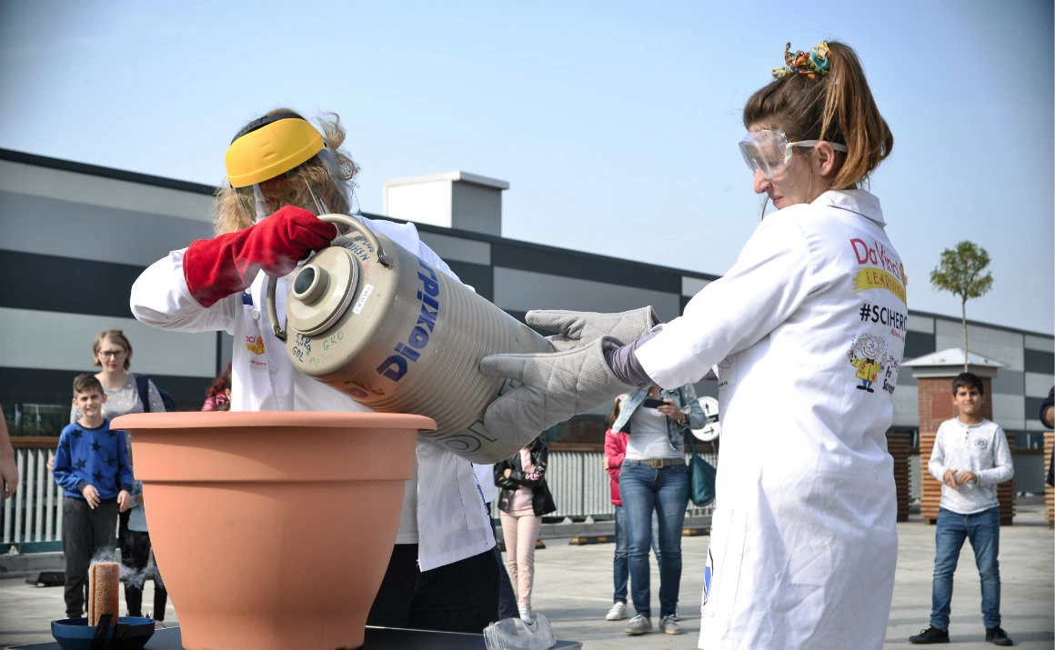 „Să explodeze parterul sau totul?”, îi întărâtă o animatoare în miezul Zonei „Science”. „Totuuuul, daaaaaa!”. Animatoarea e costumată în laborantă, cu halat alb și converși albaștri. Pregătește bombă după bombă cu gheață carbonică. La ultimul experiment, gheața carbonică e pusă în exces în lighean și produce multă ceață, pe care ăștia mici aproape că vor s-o ia acasă.