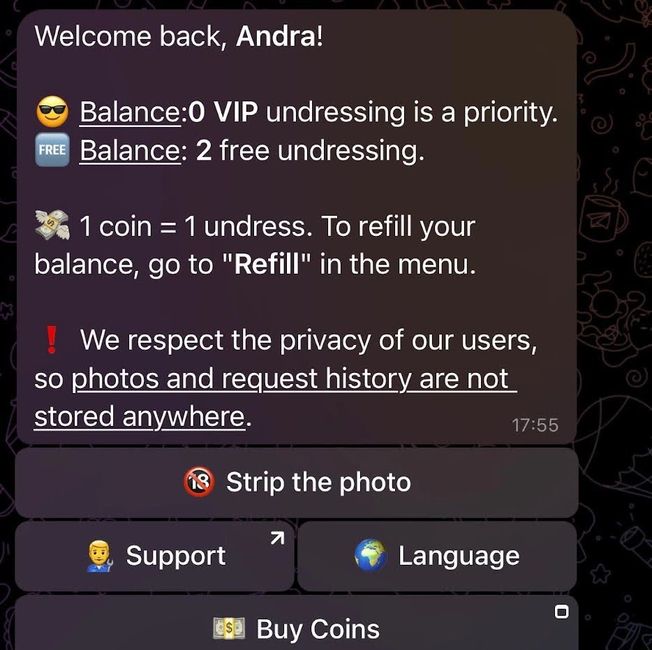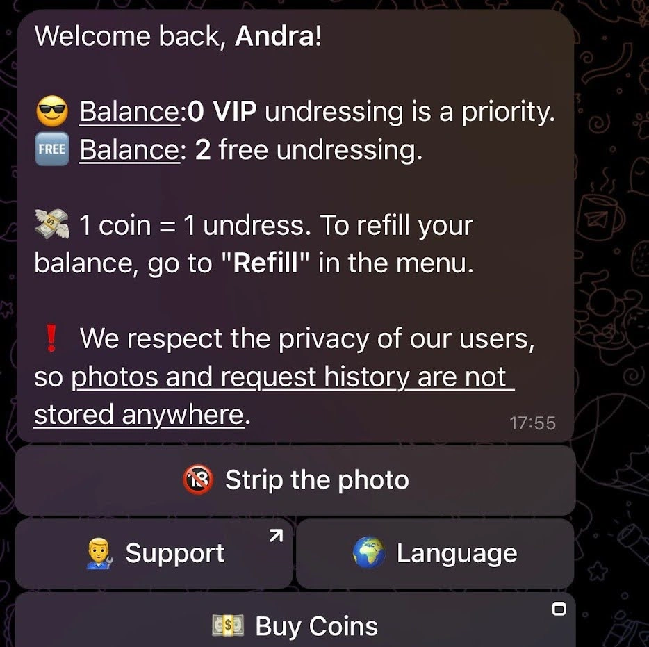 Datele sunt confirmate de numeroasele forumuri dedicate fanteziilor sexuale ale bărbaților, unde ei cer și fac schimb de poze nud cu femei. Le găsești la un simplu search pe Google. Se observă și în creșterea numărului de aplicații care pot dezbrăca pe oricine în câteva minute, pentru doar zece lei. Unele chaturi de Telegram îți dau două încercări gratis, după care trebuie să plătești în funcție de ce rezultat vrei să obții.
