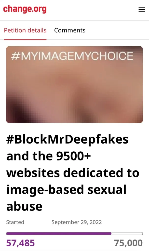 La un simplu search pe Google, dacă scrii „deepfake porn”, vei găsi sute de rezultate de la site-uri care se folosesc de identitatea unor femei fără consimțământul lor. O campanie globală strânge semnături pentru a pune presiune pe companii precum Google, Verizon sau Visa să blocheze aceste site-uri. Momentan a ajuns la 57.457 de semnături din țelul propus de 75.000.