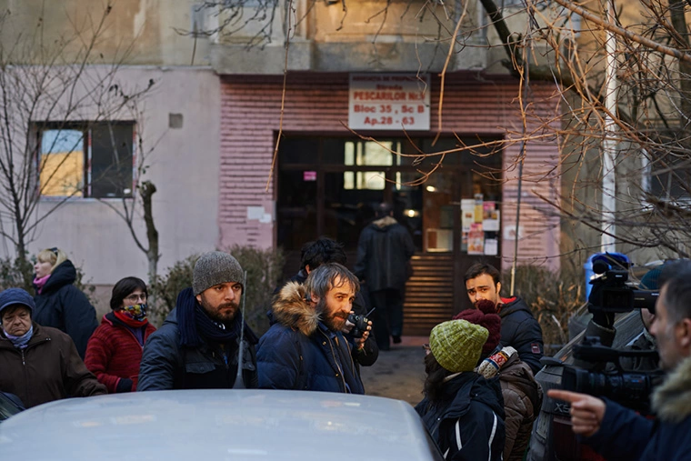 Pentru că atunci când vine cinematografia vine prăpădul, distruge echipa tot. E nasol cu echipele de filmare. De asta îi sfătuiesc pe toți oamenii care sunt întrebați dacă vor să închirieze să se gândească de două ori înainte de a spune da unei echipe de filmare. Sunt foarte mulți oameni iresponsabili. Noi când am filmat Sieranevada s-au întâmplat tot felul de chestii ciudate. Am găsit un apartament într-un bloc din zona Sebastian, din București. Dar era renovat și asta nu ne ajuta. I-am întrebat pe proprietari dacă în blocul ăla există un apartament identic, dar nerenovat. Era foarte bună distribuția camerelor pentru ce mă interesa pe mine. Avea 100 de metri pătrați, cel mai mare apartament comunist pe care l-am văzut eu. Mi-au spus că mai e la etajul al doilea, că a murit domnul Cotescu și e liber apartamentul. Am fost a doua zi să-l văd, era în weekend și ei făceau parastasul de 40 de zile pentru taică-su. Exact ca în film, unde are loc un parastas de 40 de zile. Domnul Cotescu locuia într-un apartament de patru camere, nerenovat, cu două pisici. Oana Giurgiu, care a fost producătorul executiv, mi-a spus că are sentimentul că a intrat în apartamentul lui Lăzărescu. Erau pisicile și ăla era dispărut, ca în filmul cu Lăzărescu. Multe similitudini. Domnul Cotescu era pasionat de cinema, colecționar de timbre, de tablouri, multe cărți. Puține obiecte am adus noi acolo, ca să aranjăm apartamentul. Ce a făcut scenografia a fost incredibil, apartamentul a fost reinventat, dar foarte multe dintre obiectele ce apar în film sunt ale domnului Cotescu. Am găsit două cărți poștale cu fotografii și autograf, una cu Jean Constantin și una cu Sergiu Nicolaescu. Avea un caiet cu filmele pe care le văzuse. Când am făcut contractul, ni s-a spus că dacă trăia domnul Cotescu, ne lăsa să filmăm gratis, că era cinefil. S-a ajuns și la chestii de paranoia. A fost o actriță care zicea: „Nu suntem singuri aici, se aud tot felul de chestii”.