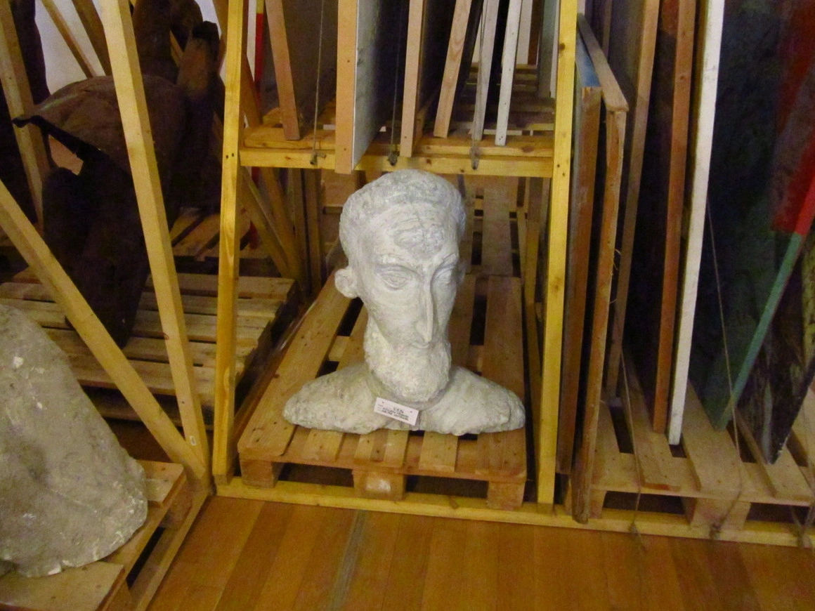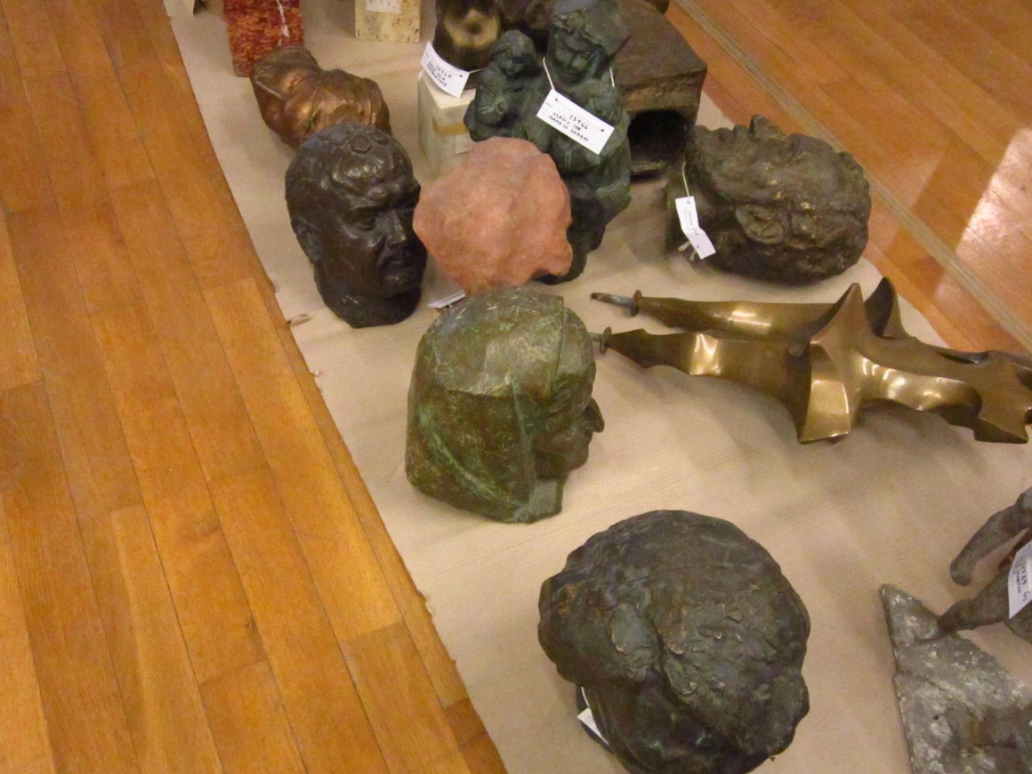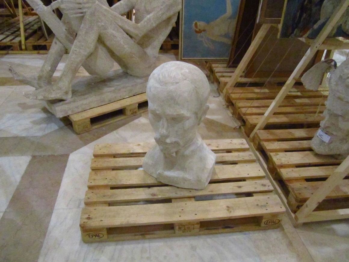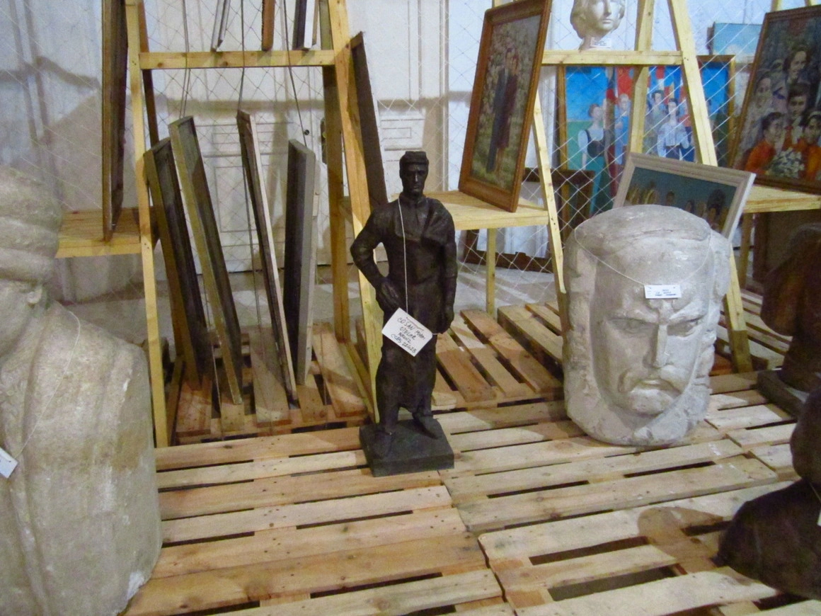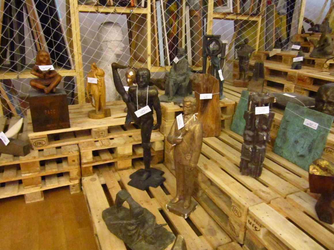 Pentru că această expoziție, deși e o serie de rasteluri de pictură și de europaleți pe care sunt expuse sculpturi de mărime medie și picturi puse la raft, această expoziție nu e despre exponate. E o expoziție despre cum funcționează un muzeu și ce își propune el să facă, pornind de la colecția pe care o are.