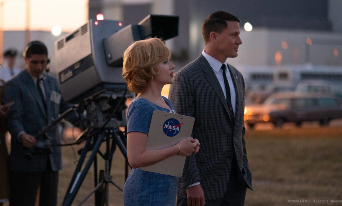 Filmul nostru pornește ca un fel de Mad Men încrucișat cu Apollo 13 și White House Plumbers. Kelly Jones (Scarjo), o publicitară de pe Madison Avenue cu un trecut dubios e tocmită de unul dintre mai dubioșii lui Nixon (Woody Harrelson în același rol pe care-l joacă de un deceniu) să facă cursa spațială cool din nou. De când murise JFK, războiul din Vietnam cam luase fața programului Apollo, care trecuse și prin tragedia Apollo 1 și bănuții nu mai curgeau dinspre administrație ca pe vremuri. Doar că echipa de ingineri care construiește rachetele Saturn și pregătește aselenizarea e condusă de Cole Davis (Channing Tatum), directorul de program, un fost pilot scorțos și lipsit de umor. Publicitara sexy și sălbatică dă nas în nas cu directorul scorțos și zboară scântei! E vorba, totuși, de doi dintre cei mai sexy oameni de pe planetă!