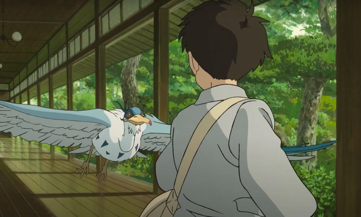 Tare mult i-a plăcut maestrului să facă filmul ăsta. Și asta mi-a rămas în cap, odată cu acel apus interminabil, cu raze de lumină căzând drept din nori în timp ce pe mare se întinde o linie de corăbii cu pânze desfăcute. Sunt doar o aparență, așa aflăm un pic mai târziu. Băiatul și stârcul este un film la fel de mult despre stafii cum este și despre oamenii vii, cei tineri care abia acuma cresc și trebuie să ia în primire lumea lăsată de părinți. O lume trecută prin război – pe care Mahito, băiatul din poveste, chiar l-a prins. Războiul i-a omorât mama. Un incendiu a cuprins spitalul în care se afla femeia și asta a fost. Apoi acțiunea sare în timp și afli că a trecut: și incendiul și războiul și doliul tatălui. A rămas un băiețel într-o lume cu femei însărcinate și bătrâni. Este lăsat de unul singur să se descurce cu noul: casa nouă, mama nouă. Doar fricile și coșmarurile sunt vechi. Se pierd câteva minute cu introducerea asta, care aduce aminte de cărțile vechi, cu desene pe o pagină și scris pe cealaltă, fiecare început de capitol fiind încununat de o literă mai mare ca toate celelalte, frumos caligrafiată.