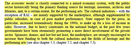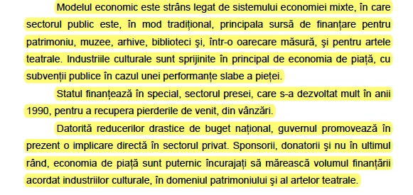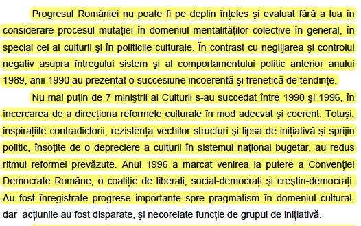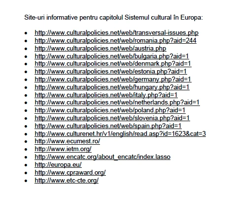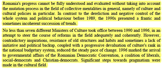 Capitolul din teza actualului manager și profesor al UNATC se intitulează „Sistemul cultural în Europa” și se întinde între paginile 105 și 180. După o scurtă introducere, urmează prezentări ale unor sisteme din țări din Europa Occidentală (Austria, Franța, Germania, Italia, Spania, Danemarca, Olanda), apoi ale unora din Est (Estonia, Ungaria, Polonia, Slovenia și Bulgaria).