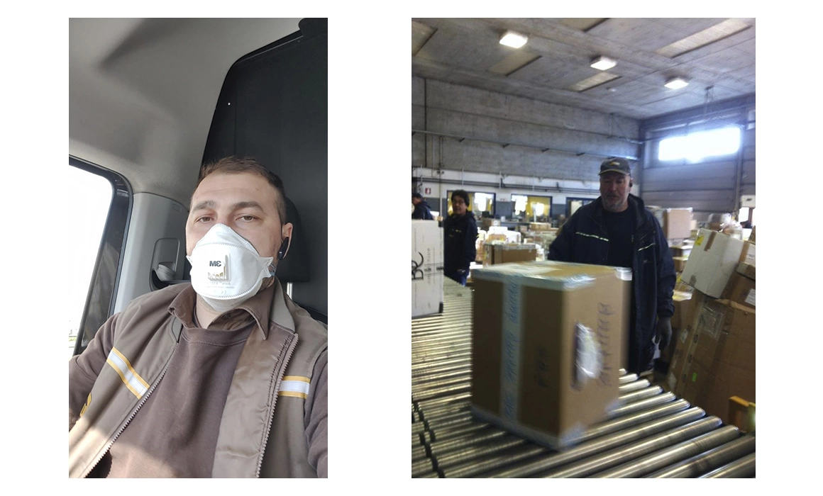 Acum, a intervenit și distanța pe care trebuie să o păstreze când întinde un colet. Predarea a devenit un ritual în care fiecare gest trebuie făcut cu multă grijă. Stă la doi metri de pragul ușii și evită plata cu numerar. Cu cât e mai mic pachetul, cu atât mai mult crește riscul îmbolnăvirii, pentru că trebuie să te apropii de celălalt. Ca măsuri de protecție, primește în fiecare zi la firmă o pereche de mănuși, un gel dezinfectant și două-trei măști „de hârtie sau din cârpă, din alea mai simple”. Dar protecția asta minimă nu e un scut pentru virusul care rezistă pe pachetele din carton până la 24 de ore, iar curierii ca Viorel Cojocaru sunt nevoiți să preia sute de livrări pe zi și să-și riște viața la locul de muncă. „Majoritatea firmelor sunt închise. Aproape totul e închis. E sinistru să nu te întâlnești decât cu poliția, cu garda de finanțe și cu salvările care trec încontinuu. Este foarte stresant. Cred că am îmbătrânit cu cinci ani în ultima lună de zile”, mai spune el. Acasă, soția îl așteaptă în fiecare seară îngrijorată, iar rudele și prietenii din România îl sună mai des ca oricând.