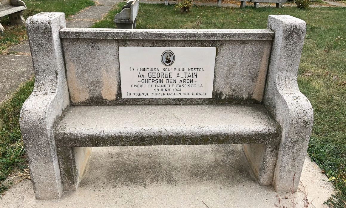 În Cimitirul Evreiesc Filantropia din București se află acest monument funerar sub forma unei bănci, pe spătarul căreia este încastrată fotografia avocatului Gherșin (George) Altain (Altein). Data decesului scrisă pe monument: 29 iunie 1941.