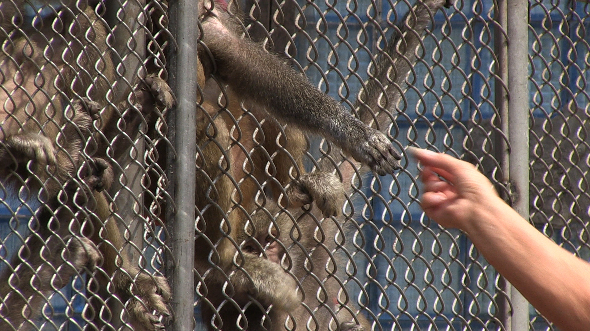 Sunt scene în care asistăm la concursuri de „șmecherie” între primate, unele în afara cuștilor, primatele medici, venite în baston din timp, ce se „joacă” cu cele din spatele gratiilor, primatele-sclavi, cu mâinile agile întinse în afară, gata să atace printr-un gest camuflat în cerșit.