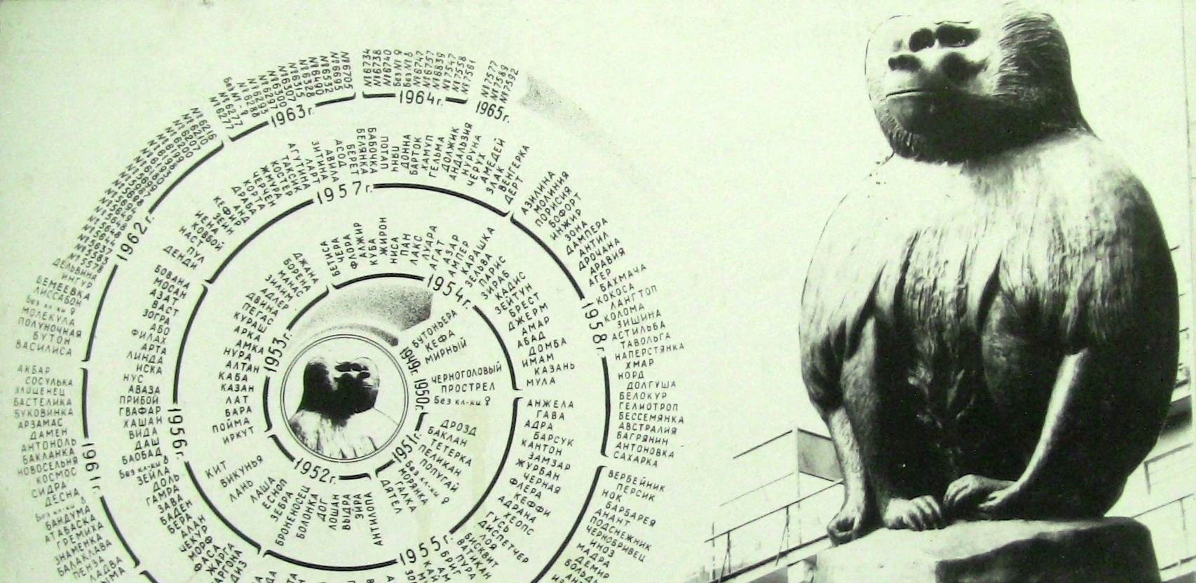 Ghidați, împreună cu turiștii, prin minusculul muzeu al institutului Suhumi (adevărat cabinet de curiozități alter-colonial, nu occidental), printre fotografii cu fondatorii coloniei, maimuțe împăiate și o statuie low-profile a lui Lenin, ne este prezentată o grafică înrămată, reprezentând în spirală arborele genealogic al eroului simian urcat pe soclu. Familia nesfârșită a lui Murray, vârsta de jedi a babuinului și contribuția lui la bunăstarea și progresul primatei surori. De parcă și-a dorit să salveze umanitatea de viruși și bacterii; protagonistul a mii de experimente e pus pe postament împotriva voinței lui, e turnat în bronz cu forța. În timpul filmului ne dăm seama că ar fi dat orice sa nu i se facă statuie. Nu e statuia din Planet of the Apes (Schaffner), construită de maimuțe spre a-l cinsti pe eliberator (Ape-raham Lincoln).
