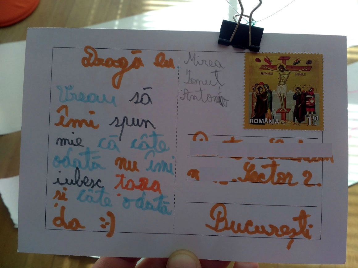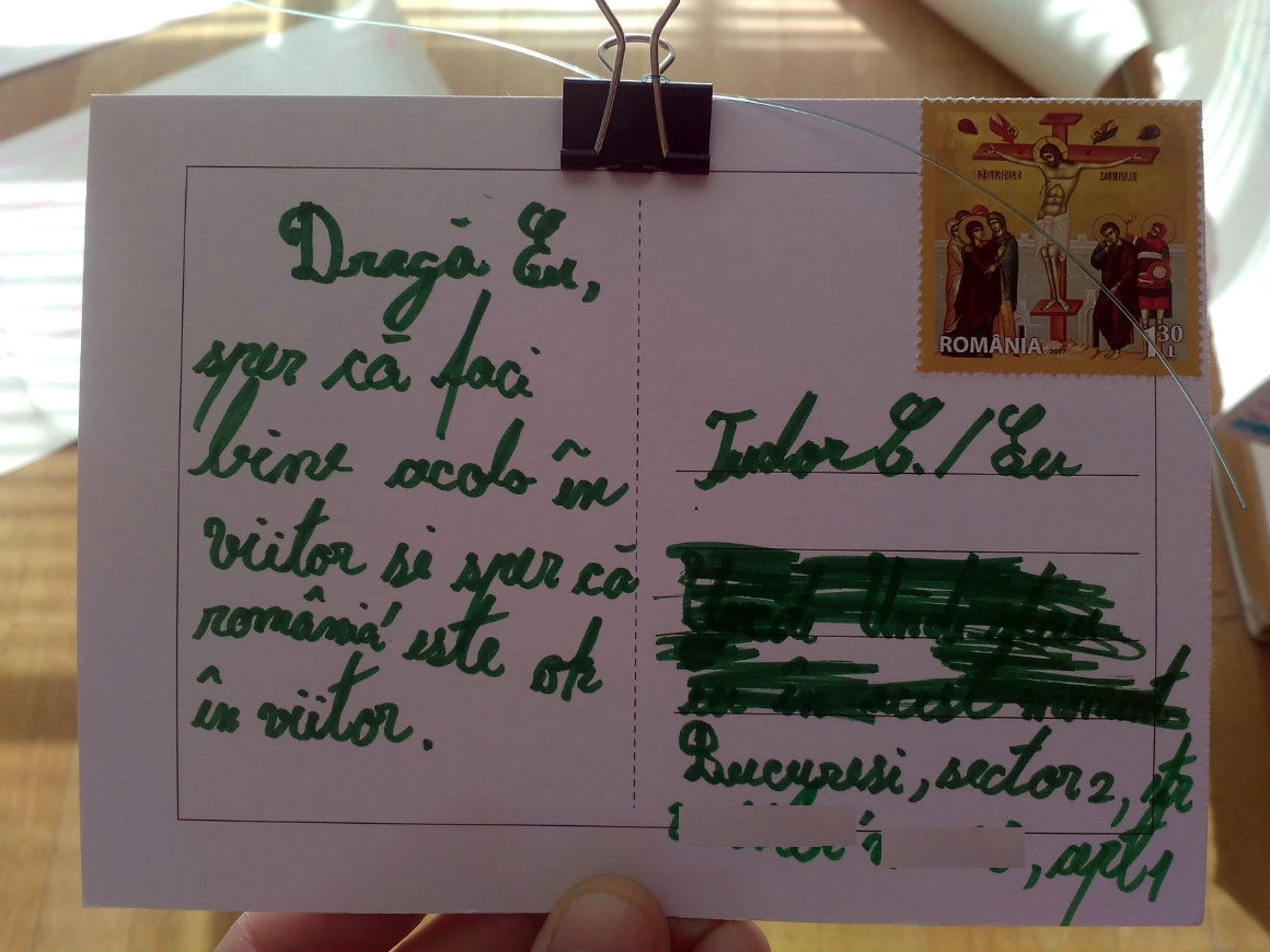 — Ce ai scris pe cartea ta poștală?