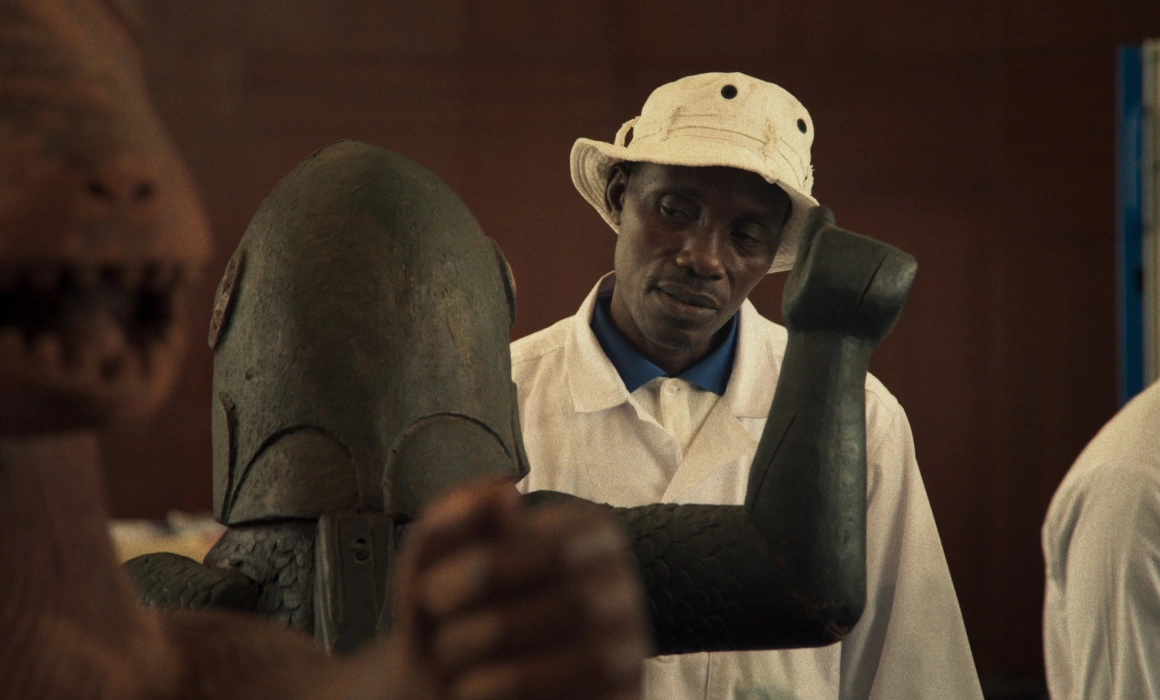 Dacă până aici poate sună ca un documentar destul de straightforward, ei bine, Diop – a cărei muncă a fost mereu preocupată nu doar de efectele colonialismului francez, ci și de spiritism, animism și ritual, mai ales in Atlantique – operează aici o schimbare de paradigmă, ducând în mod deliberat o bucată suficient de mare a filmului în zona ficțiunii. Artefactul numărul 26, corespunzând statuii regelui războinic Gezo, prinde viață și începe să grăiască în limba Fon despre ceea ce-a simțit în zecii de ani de „captivitate” petrecuți într-un tărâm străin, ce revine într-o lume ce-i pare irecognoscibilă. Monologurile sale poetice ne parvin ca și cum ar veni de dincolo de lumea celor vii, undeva între prorocirea divină a unui oracol și blestemul pe care-l aruncă asupra trecutului. Poate părea o alegere artistică auto-exotizantă, după cum au etichetat-o unii critici – însă textul profund poetic, scris și citit de scriitorul haitian Makenzy Orcel, dă o dimensiune mult mai amplă caracterului disruptiv și devastator al furtului acestor statui și artefacte.