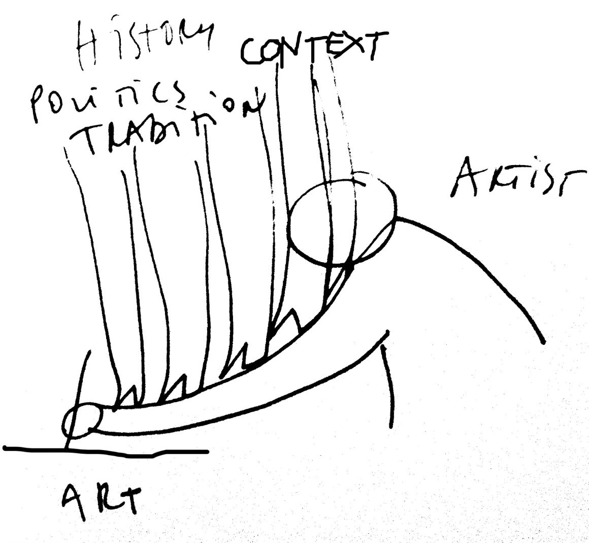 Școala trebuie să aibă o legătură mai directă cu instituțiile artei de după școală. Doi, școala ar trebuie să le dea oamenilor niște skills și niște knowledge în afara artelor, pentru ce înseamnă a exista în această lume - lumea din București, din România, din Europa, lumea globală. Ai foarte multe posibilități. Țelul vieții nu e să expui la galeria nu știu care din București sau să țopăi pe terasă la MNAC. Astea sunt două instituții din cele 40.000 sau 120.000 din lumea asta.