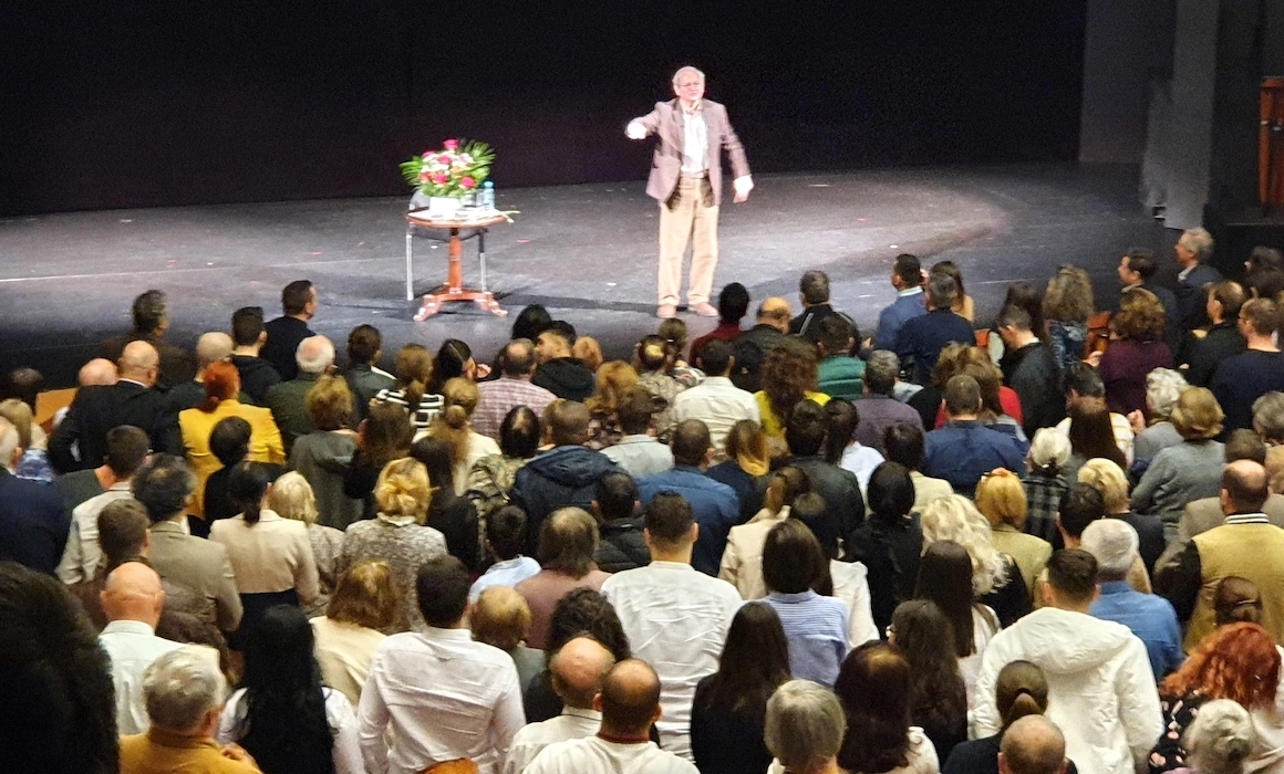 Deocamdată însă e aici, cu noi. Ne zice că artistul nu poate funcționa decât împreună cu publicul său, că „teatrul se face împreună. Eu fără dumneavoastră nu am nicio valabilitate”. Ne gratulează ca fiind „acel public care ridică, un public vital”, că nu suntem „cretinoizii” care râd la vulgaritățile de la stand-up comedy.