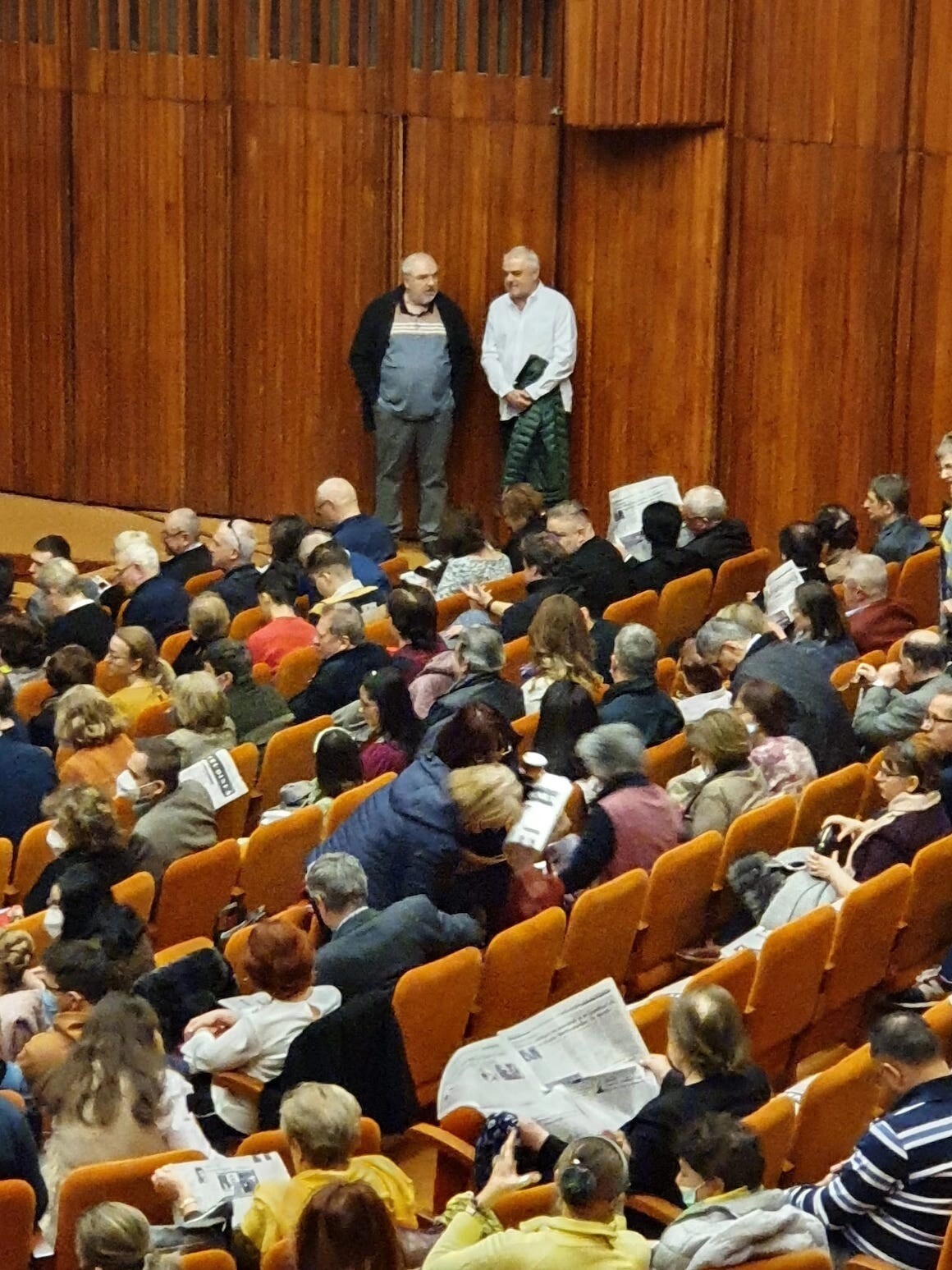Însă Rusu se află în sală înainte să înceapă evenimentul lui Dan Puric, e de față când oamenii se așază și încep să răsfoiască „Certitudinea” găsită pe scaune. Sute de ziare cu articole naționaliste și antisemite foșnesc prin fața sa, pe hol așteaptă alte vrafuri, iar directorul interimar spune că nu știe nimic despre asta.