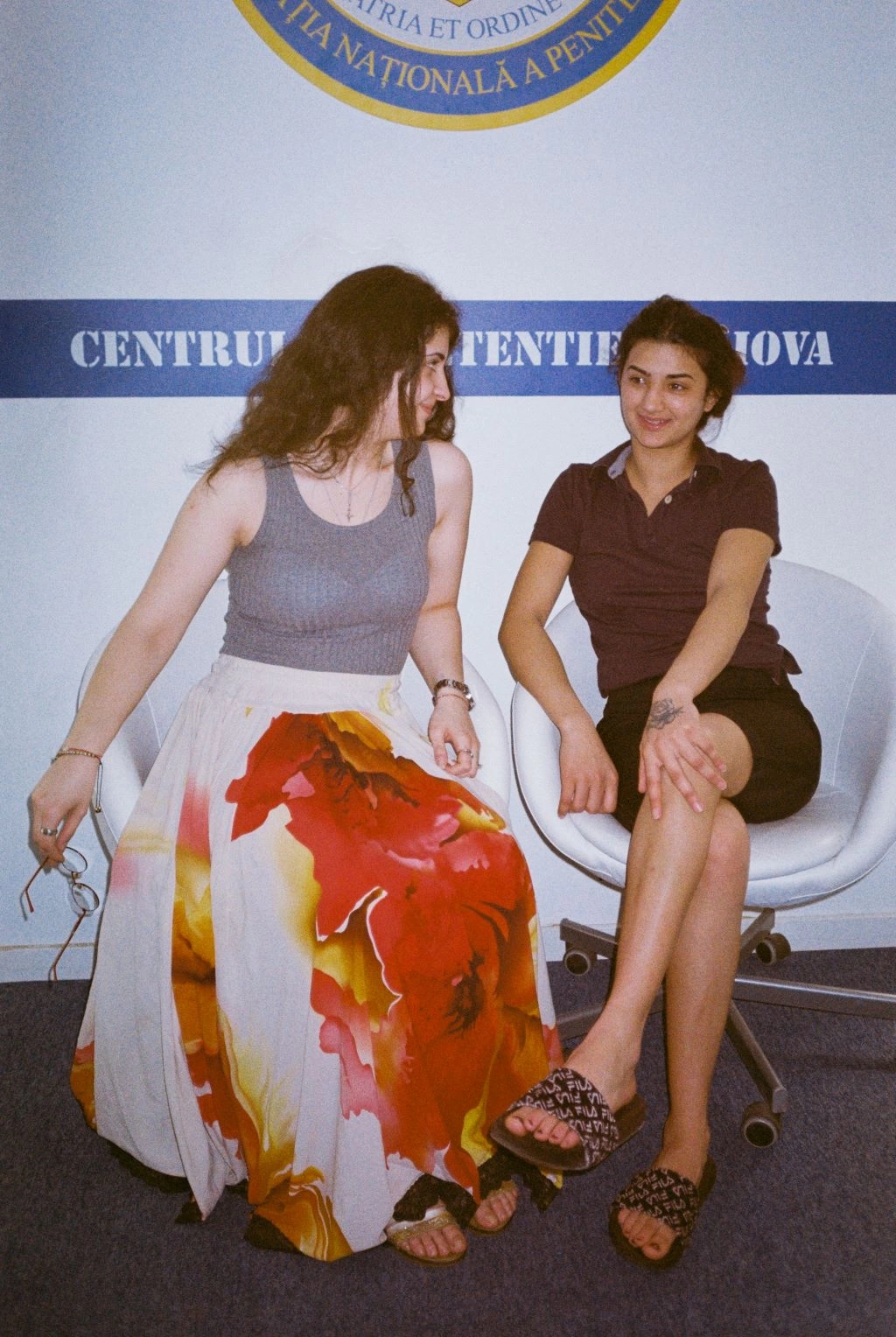 Ionela și Roxana stau una lângă alta, într-un colț, și ascultă fără să spună nimic. S-au cunoscut aici, sunt colege de cameră și spun că sunt cele mai bune prietene. Vorbesc aproape orice: despre cărțile pe care le citesc, ce anume scriu în jurnalul pe care-l țin în cameră și despre dorul de familiile lor, pentru că nu vor să le zică lor la telefon lucrurile astea, ca să nu-i întristeze.