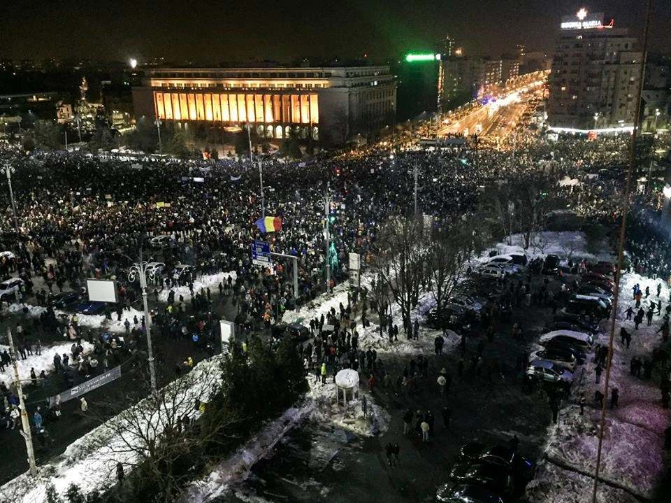 Apar bannere cu mesaje tot mai inventive: „După atâta furătură, nu ai avut bani de dantură?”, „Gratii, nu grațiere!”, „Stop ciordocrația”. Se împart foi cu strofele imnului național. Lumea scandează: „Noaptea, ca hoții!” și „Refuz, refuz, refuz acest abuz!”.