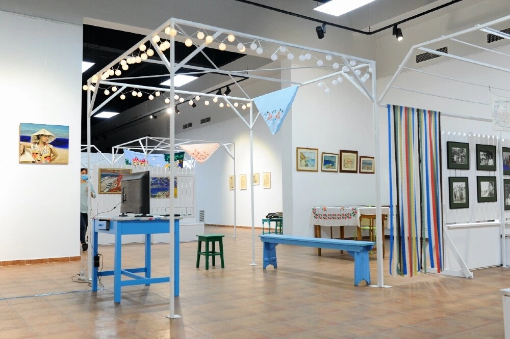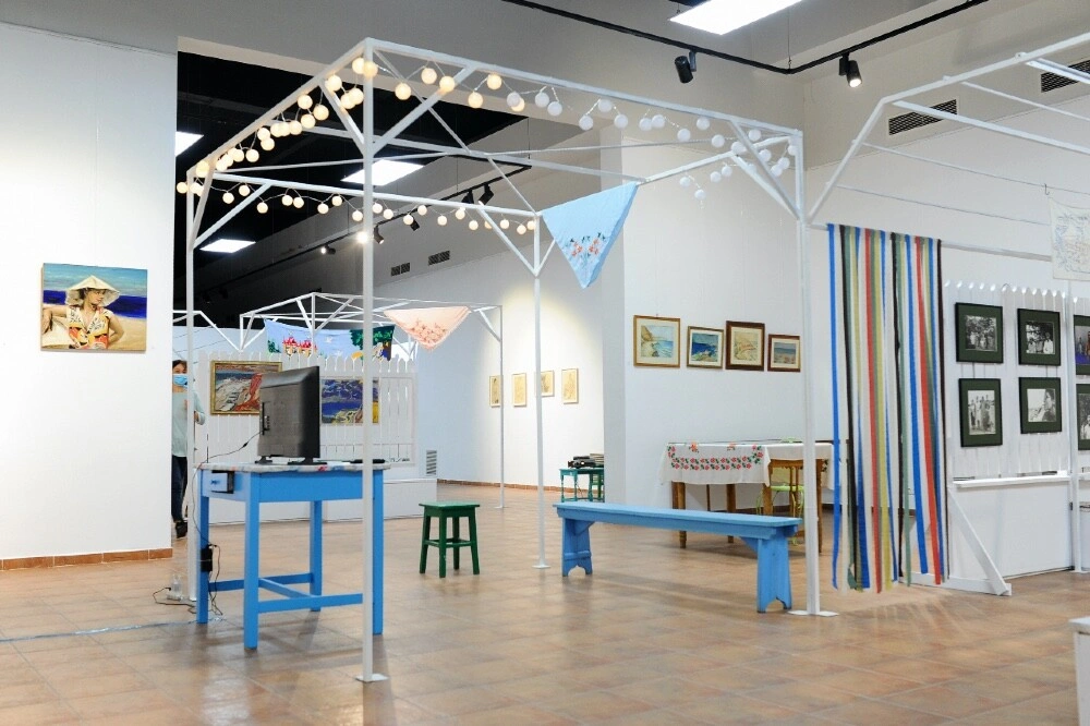 Într-o structură în formă de umbrar imaginată de arhitectul Alex Axinte, se poate simți atmosfera de seară romantică surprinsă de cineasta Ada-Maria Ichim în filmul poetic 2 Mai Evening. Familia Pacea mi-a oferit lucrări în culori electrizante care te poartă imediat la malul mării. În plus o bucățică din povestea lor de dragoste cu 2 Mai și Vama Veche se poate vedea în fotografiile de familie, expuse lângă două lucrări realizate în adolescență de pictorul Constantin Pacea, chiar în curtea gazdelor din Vama Veche.
