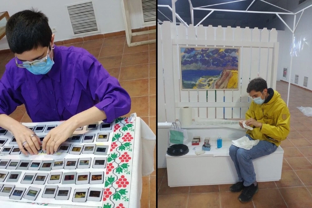 Sunt în expoziție și fac un tur ghidat, o doamnă necunoscută îmi povestește despre gazdele ei de la 2 Mai, familia Banu. „Ce fază, băncile din curtea lor sunt în expoziție”, îi spun și se bucură enorm. Începe să le fotografieze ca să le trimită Valentinei. De când s-a deschis expoziția primesc mesaje de la oamenii din sat, își recunosc bunicii, rudele sau vecinii în portretele realizate de Adrian și Alexandru Maftei - un proiect personal și intim, unde fiul (Alexandru) reface portretele sătenilor realizate de tatăl său. Unde mama, Lucia Maftei, inspirată de tot ceea ce o înconjoară pe plajă, reface în atelier melcii pe care îi trimitea la București prin poștă. Lângă ei mi s-a părut normal să așezăm cusăturile tradiționale tătărești ale lui Saide Velișa, gazda lor din sat. Cusăturile mi-au fost oferite de Ainur, fiul lui Saide, împreună cu povești și amintiri, spuse în timp ce răsfoiam teancul de fotografii ale familiei.