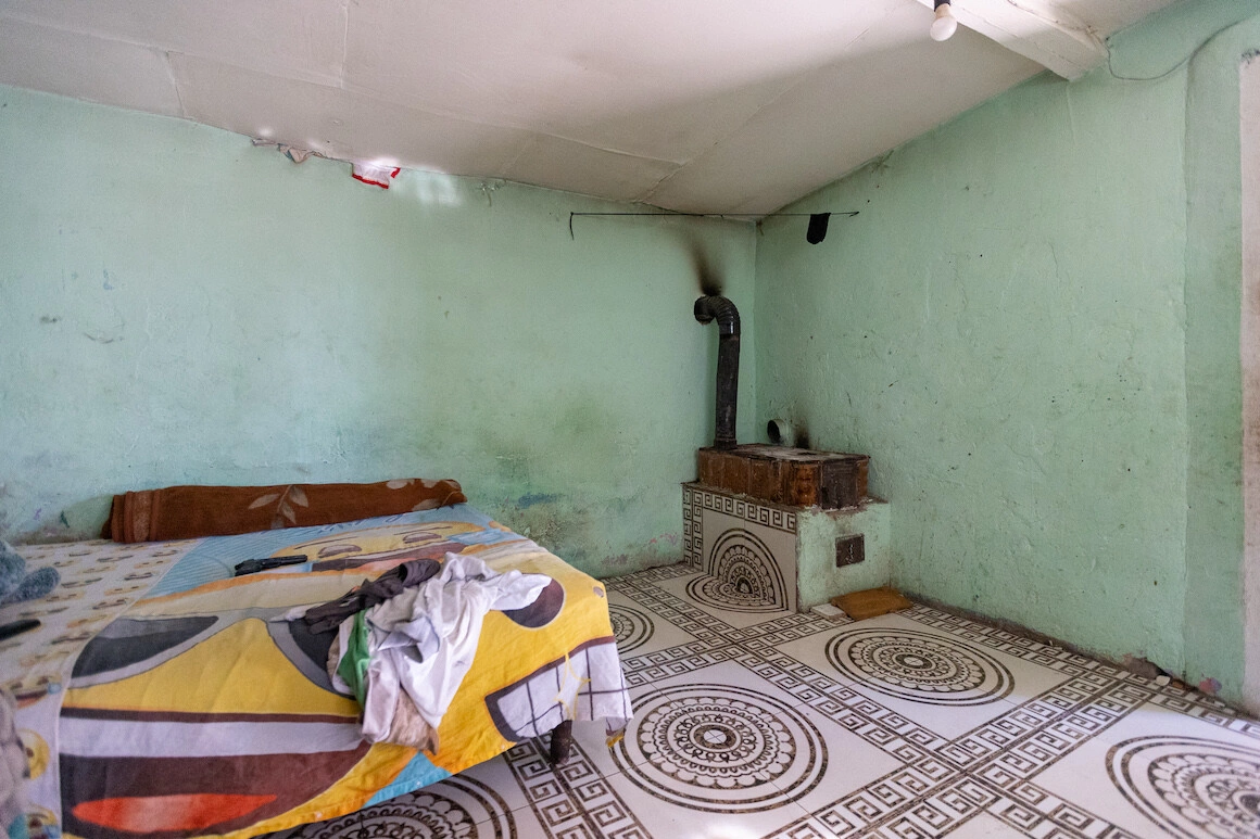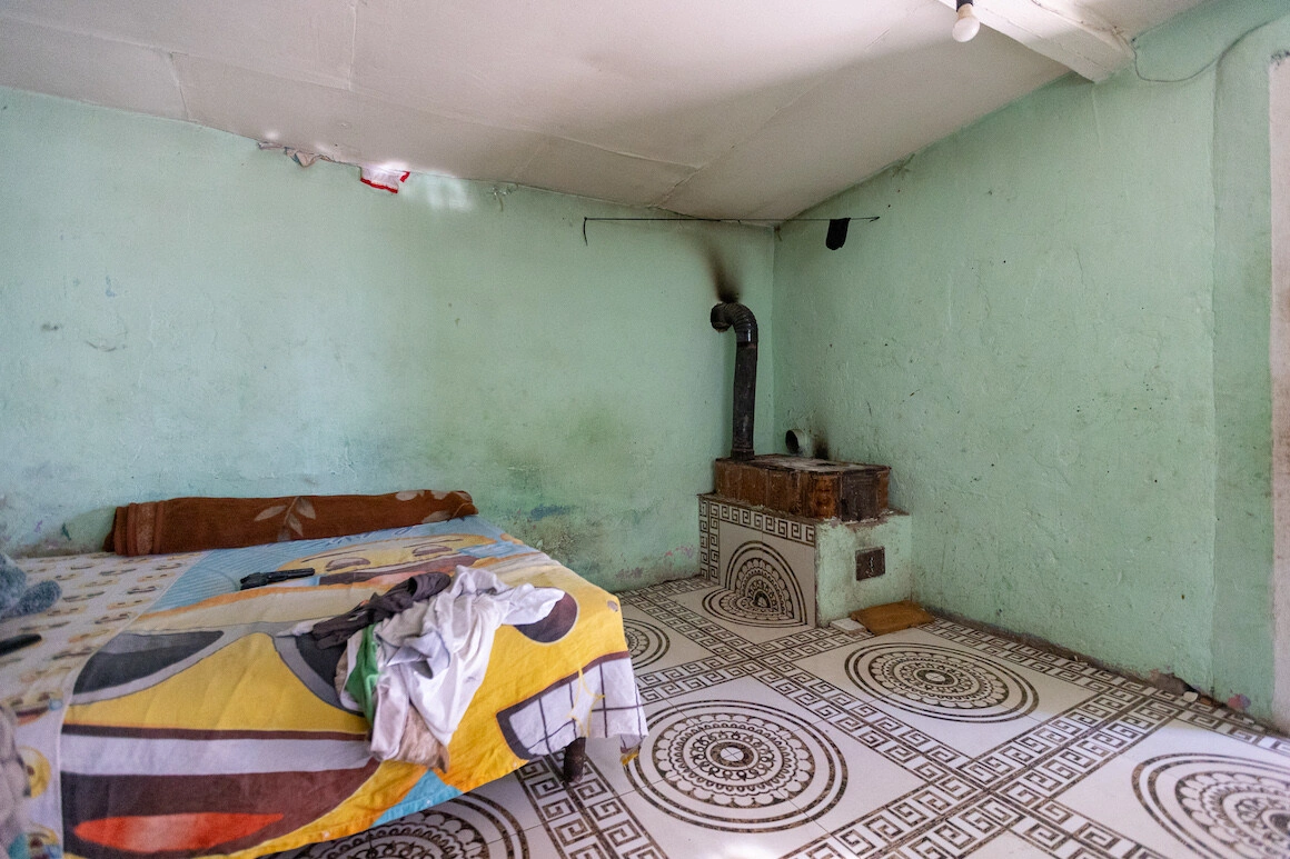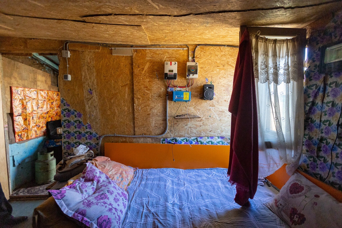 Alin, 30 de ani, îmi povestește despre comunitatea în care locuiește: „Suntem aici de vreo douăzeci de ani. Când eram eu mic am venit aici. Am început să construiesc casa în 2012. Înainte stăteam pe câmp, cu celofane pe noi. Sunt eu, soția și trei copii în casa asta. Stăteam la lumânare, nu aveam lumină deloc. După ce a venit și ne-a pus panourile, putem să ne uităm la televizor, putem să încărcăm telefonul.”